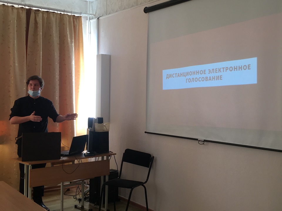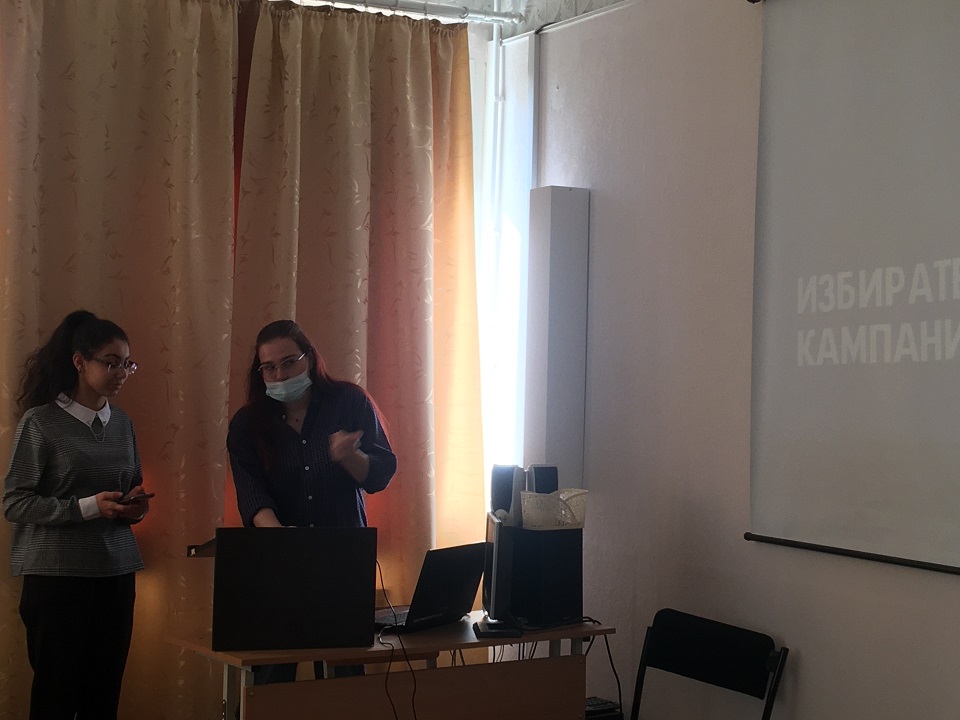 Институт наблюдателей в избирательном процессе (докладчики – Лиана Зауэр, 5 курс, и Данил Попов, 1 курс СГФ). Ребята, которые были непосредственными наблюдателями на участках, поделились опытом своей работы. Рассказали об этапах процедуры, а также заверили, что на избирательных пунктах, где они следили за подсчетом голосов, нарушений выявлено не было.