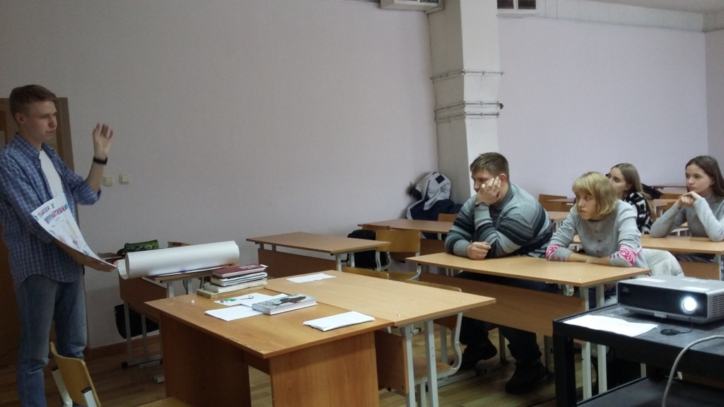 В минувшую субботу, 9 декабря для ребят был проведен и первый кураторский час – неизменный атрибут студенческой жизни. Из первых уст школьники узнали о неисчерпаемых возможностях для самореализации в различных сферах деятельности (науке, творчестве и т. д.) в нашем вузе и конкретно на СГФ. Михаил Дягилев, студент 4 курса СГФ, неоднократный лауреат различных конкурсов, обладатель многих повышенных стипендий, рассказал о своем выборе профессии, поделился впечатлениями о прохождении педагогической практики, об участии в I Национальном межвузовском чемпионате «Молодые профессионалы» (WorldSkills Russia), проходившем 29 – 30 ноября в Москве.