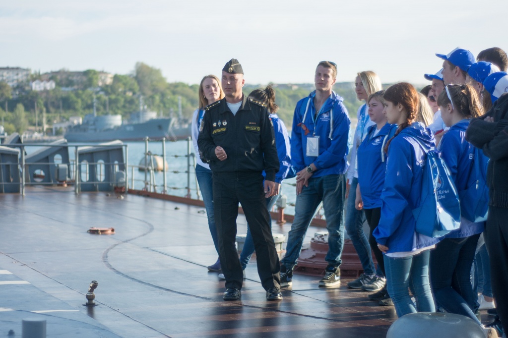 Как отмечают сами участники, во время пребывания в Севастополе была насыщенная программа, они помогали организовывать 6 мая фестиваль «Знамена Победы» на Сапун-горе – месте героической обороны Севастополя в годы Великой Отечественной войны. Участвовали в тренингах и мастер-классов крутых экспертов из Москвы и Крыма. Посетили с экскурсией 35 Береговую Батарею, где им подробно показали, как проходила жизнь солдат во время обороны Севастополя, было организовано посещение ордена Нахимова гвардейского ракетного крейсера «Москва».