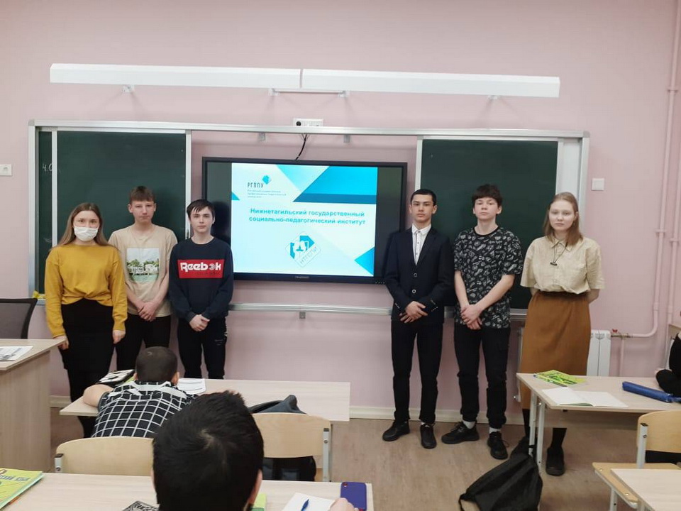 Для профориентационных встреч А. Шестакова, староста группы Нт-402о РЛТ, разработала презентацию, в которой подробно рассказала о вузе, интересных событиях, которые происходят на нашем факультете. Обучающиеся 10 и 11-х классов узнали о том, на какие программы обучения можно будет поступить в 2022 г., какими будут внутренние испытания, а также о том, какую информацию можно получить на официальном сайте филиала РГППУ в г. Нижнем Тагиле.