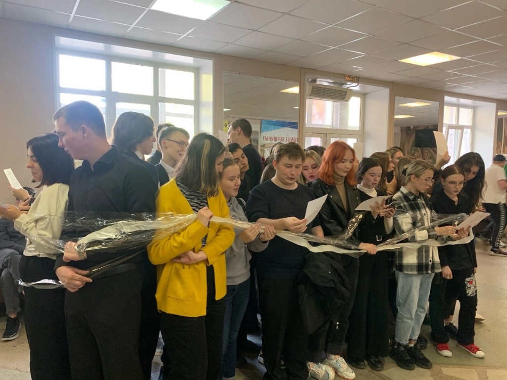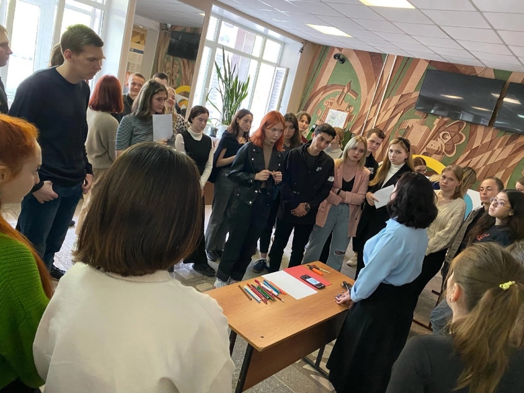 Заключительный этап проходил в холле института, где студенты должны были нарисовать герб ФФМК (все варианты появятся на стендах факультета). После успешного прохождения всех станций первокурсники были связаны и дали торжественную клятву студента, о сплоченности и доверии на следующие пять лет обучения в стенах нашего факультета.