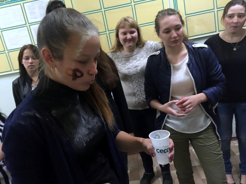 Каждый студент должен окунуться с головой в учебу и почувствовать все ее прелести, сгрызть весь гранит науки, а в конце почувствовать всю соль слез сессии. Именно это и ожидало ребят на третьем этапе. Для начала они доставали из таза с простоквашей конфеты, грызли сухари – как самый твердый гранит и пили слезы сессии – сильно соленую воду. Вознаграждением на этом этапе были ножницы.