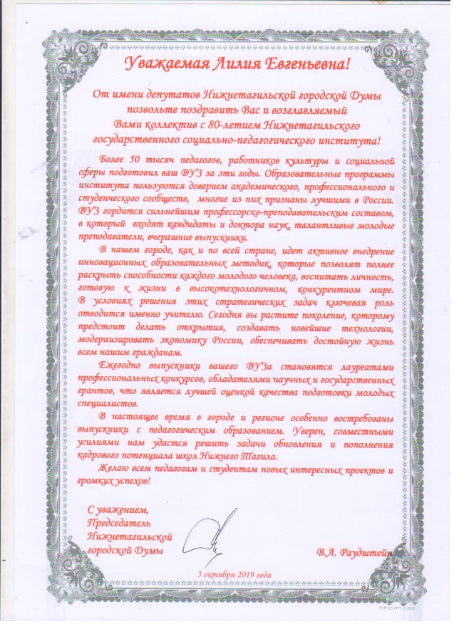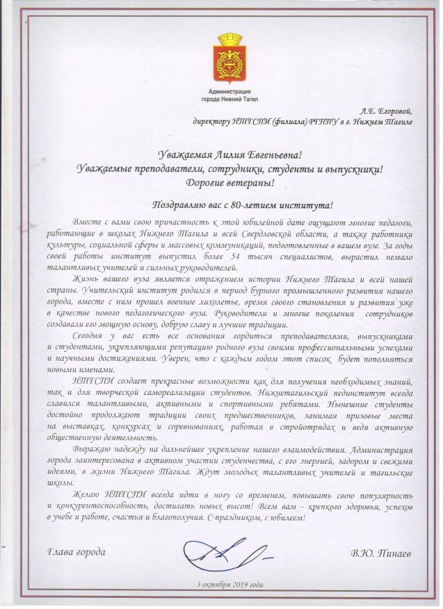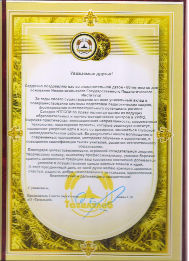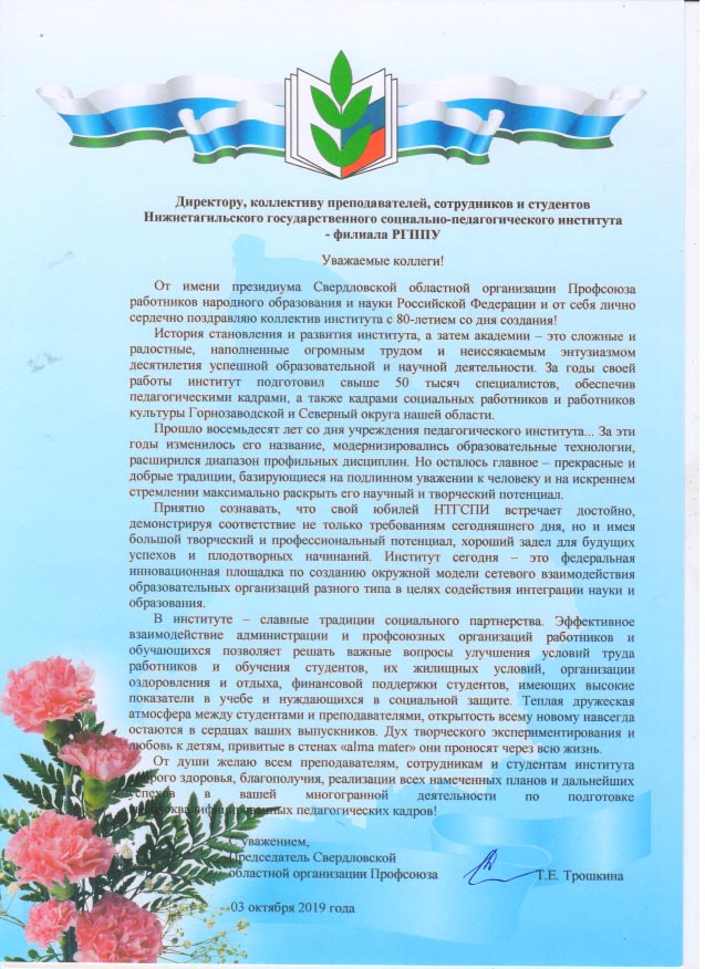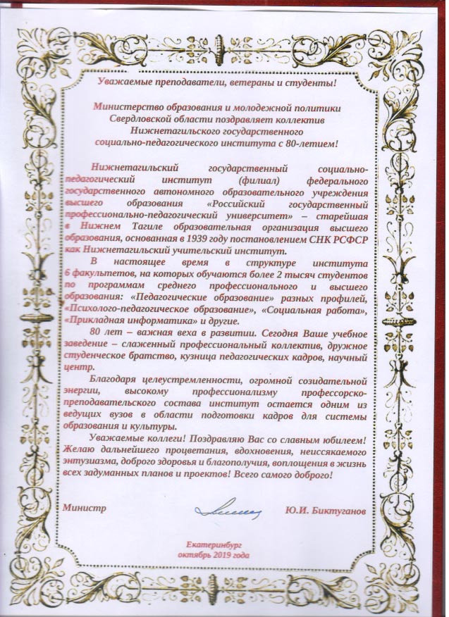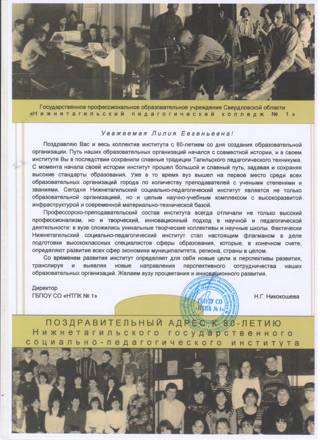 Поздравления в адрес коллектива НТГСПИ с 80-летием