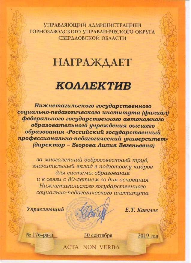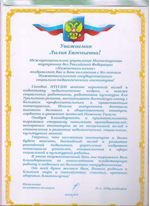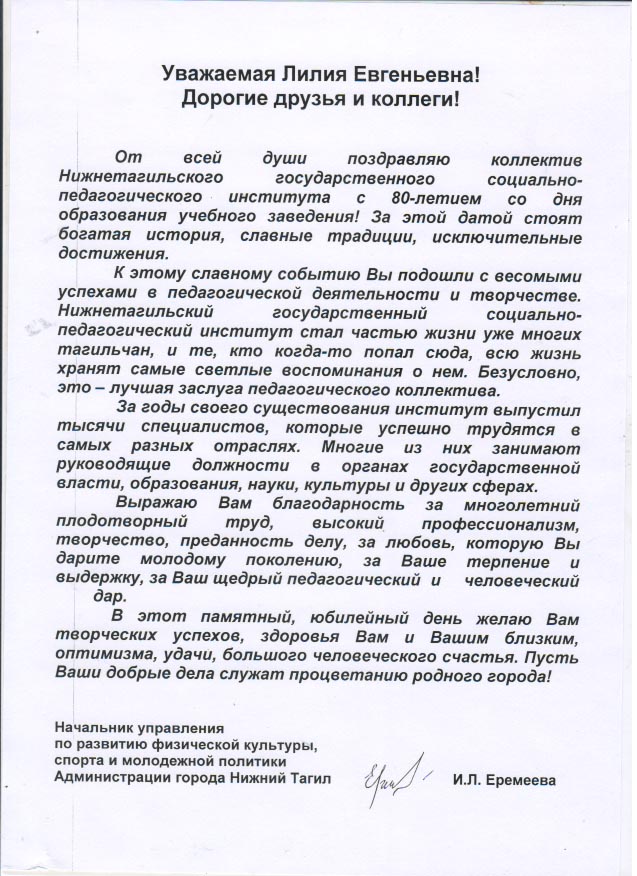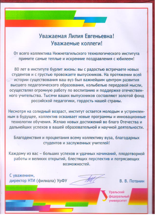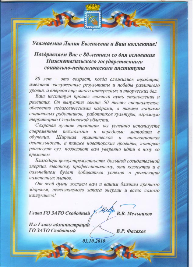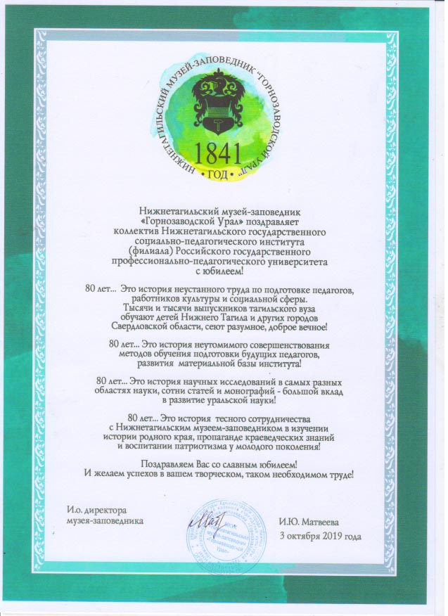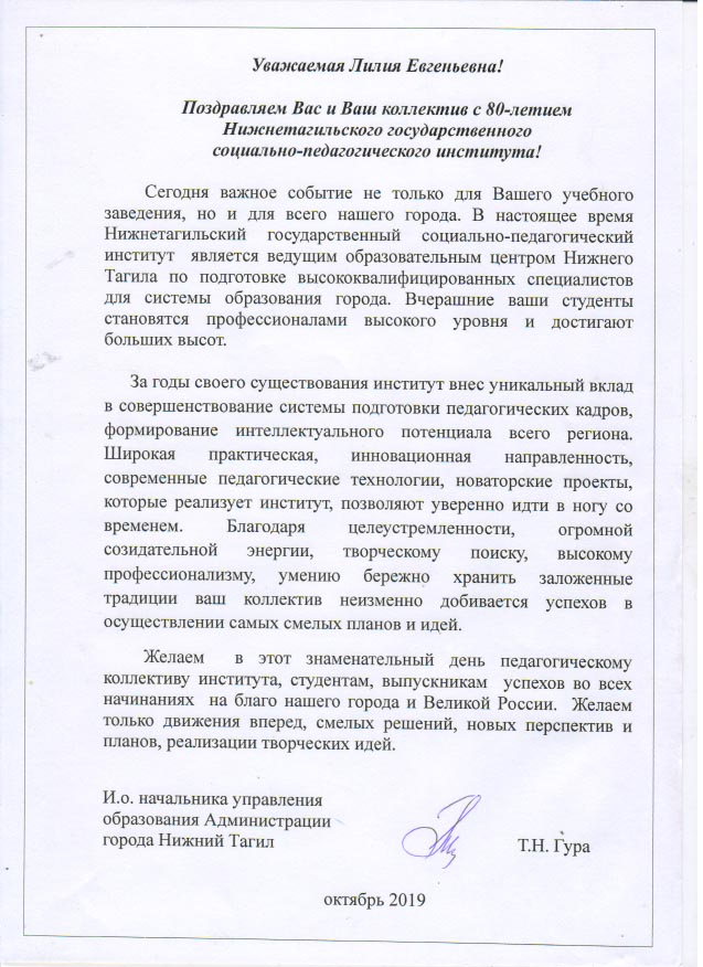 Поздравления в адрес коллектива НТГСПИ с 80-летием