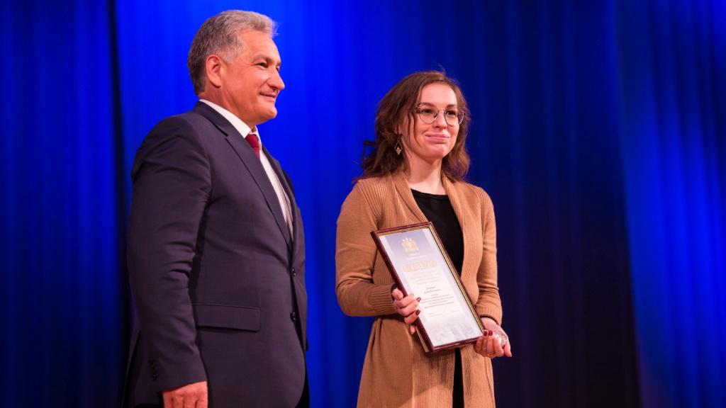 Ксения Белынцева: Все верно. В своем приветственном слове министр поблагодарил нас, наших наставников и родителей за тот труд, который делает каждый из нас. Вообще, это очень важно, что сегодня у молодых студентов есть возможность претендовать на такую награду и не один раз, а два и даже три (Ксения Белынцева получает стипендию второй раз – прим. автора).