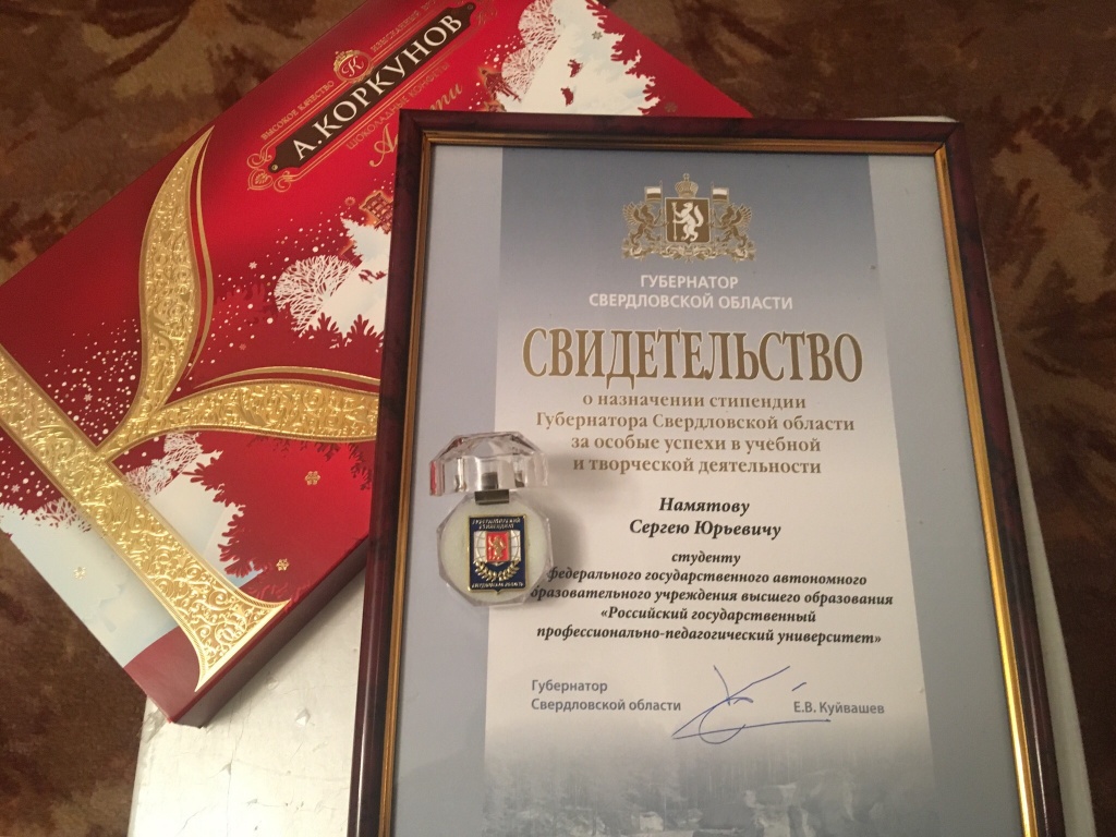 Сергей Намятов: Получить стипендию Губернатора Свердловской области для меня, в первую очередь, почётно и престижно. Для меня это некий итог моей деятельности и огромный труд моих наставников: Ирины Викторовны Даренской, декана социально-гуманитарного факультета; Ирины Владимировны Култышевой, и.о. начальника ОНИР; Людмилы Михайловны Долгополовой, председателя первичной профсоюзной организации студентов НТГСПИ.