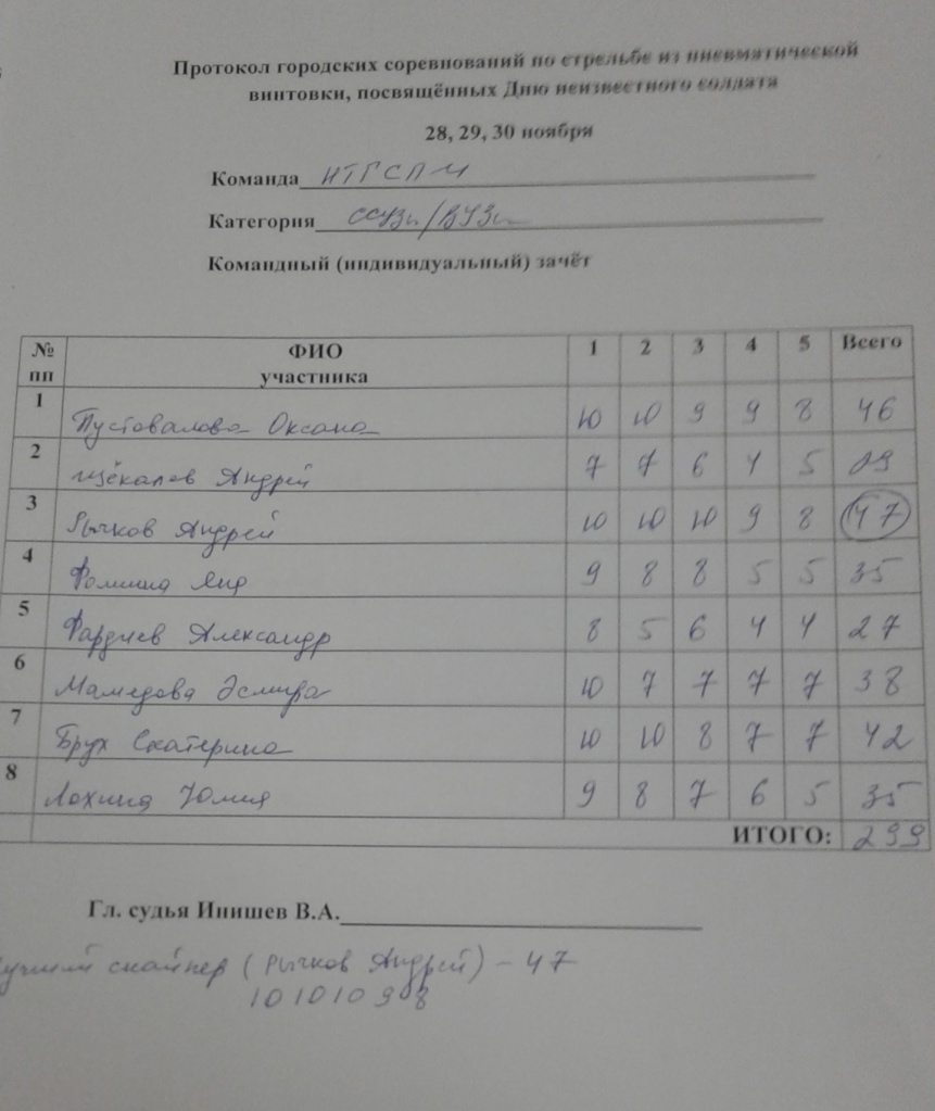 Сборная НТГСПИ (ф) РГППУ – победитель городских соревнований по пулевой стрельбе из пневматической винтовки, посвященных Дню неизвестного солдата!