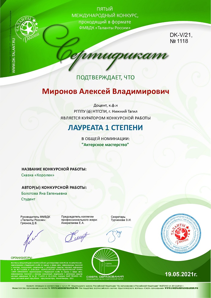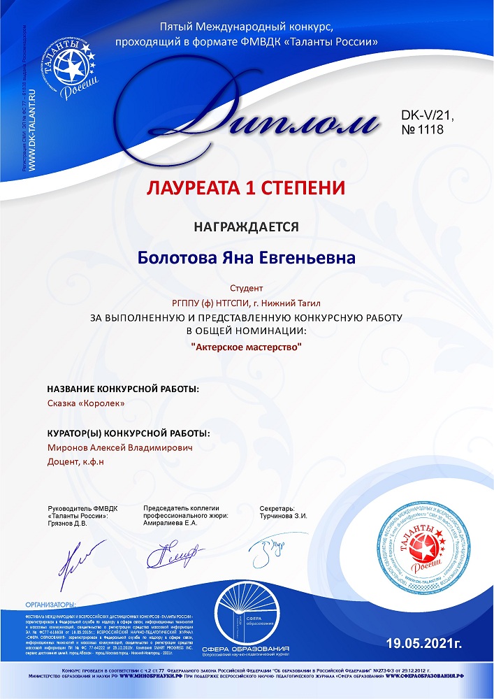 Поздравляем Яну Болотову, студентку 2 курса факультета художественного образования (профиль «Музыкальное искусство и театральное искусство») с отличными результатами в творческой деятельности!