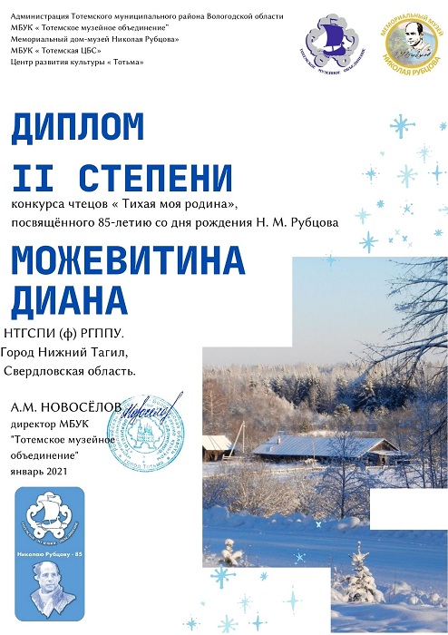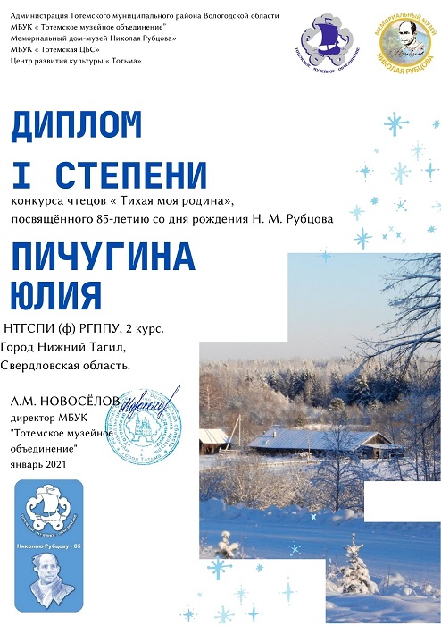 В январе 2021 г. в России отмечался 85-летний юбилей поэта Николая Михайловича Рубцова. В Вологодском крае, на родине поэта, был организован Всероссийский чтецкий онлайн-конкурс «Тихая моя родина».