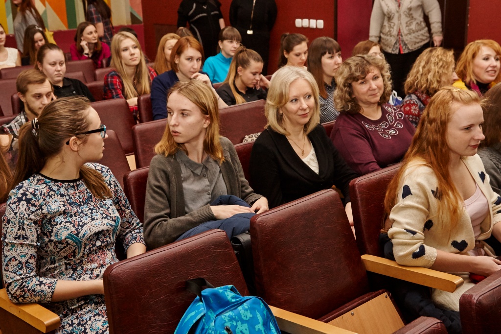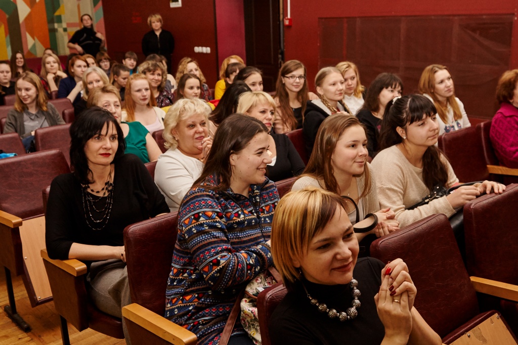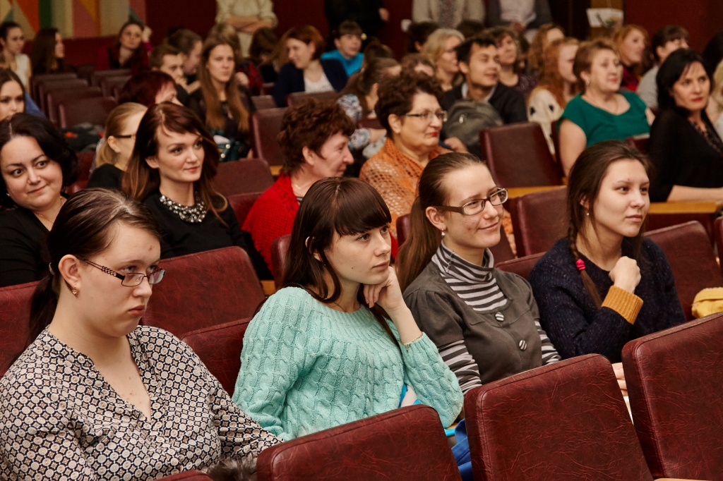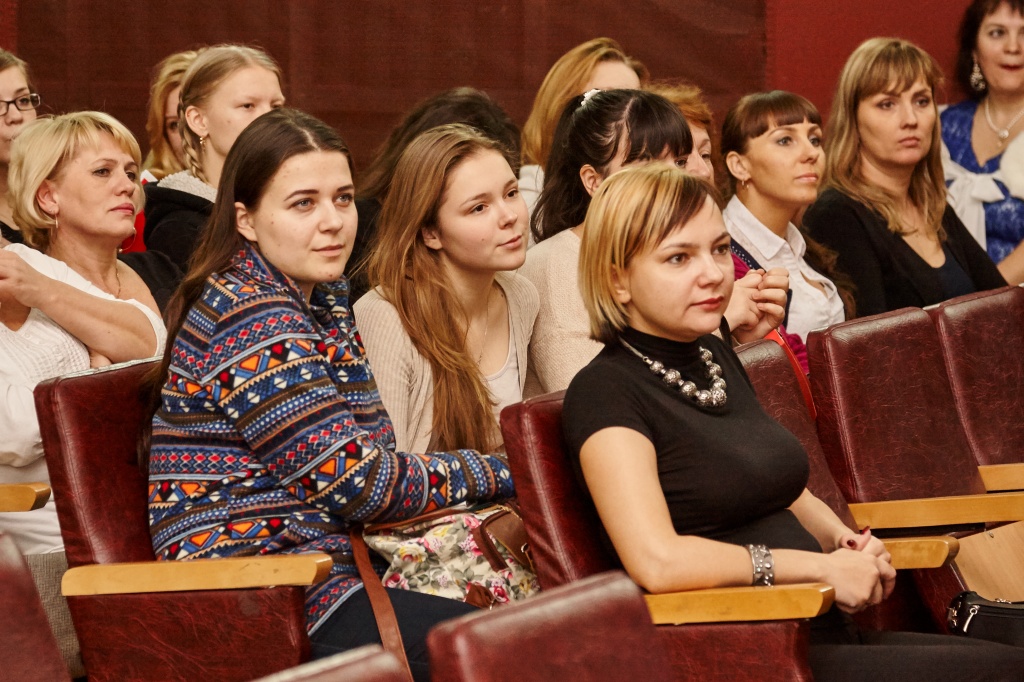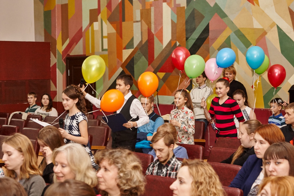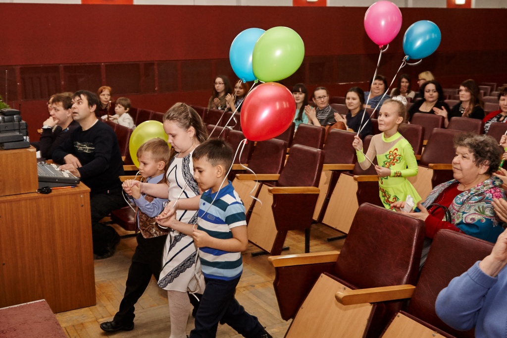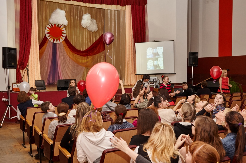 В 14:30 на праздничном концерте в актовом зале главного корпуса дети сотрудников и преподавателей поздравили всех мам с праздником и подарили свои твочерские подарки.