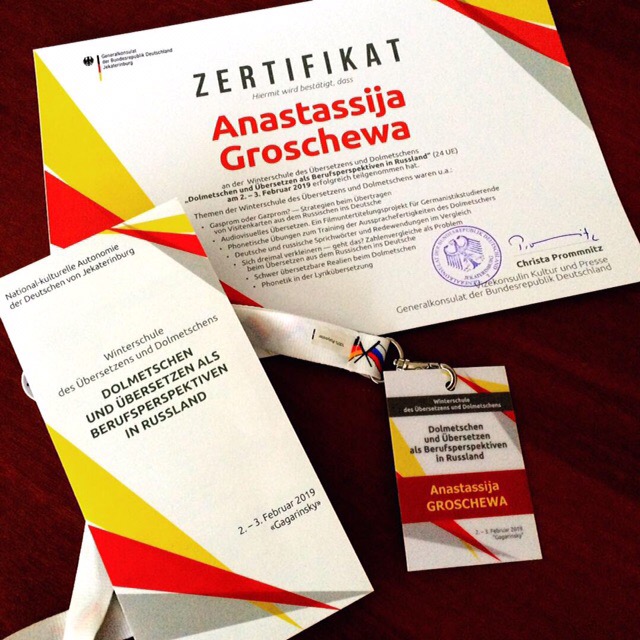 Даже каникулы студенты НТГСПИ стараются провести максимально активно и познавательно. Третьекурсница ФФМК Анастасия Грошева стала участницей «Зимней школы перевода» для студентов, начинающих и практикующих переводчиков, организованной Национально-культурной автономией немцев и Генеральным консульством Германии в г. Екатеринбург. Занятия школы проходили 2–3 февраля в физкультурно-оздоровительном комплексе «Гагаринский» г. Первоуральска.