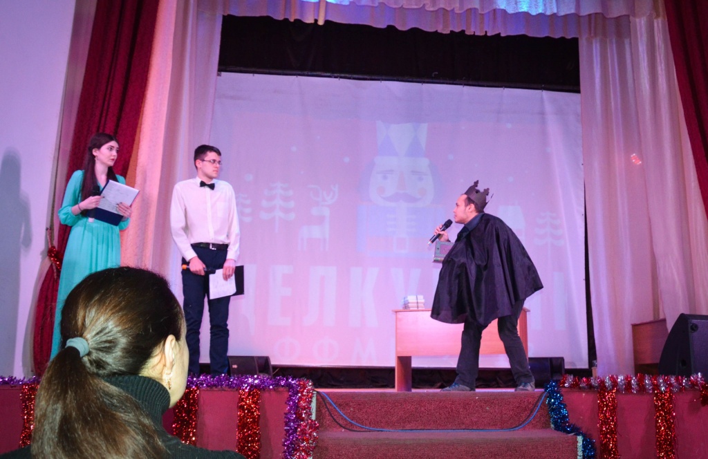 По сложившейся традиции накануне Нового года, 21 декабря 2017 года, на факультете Филологии и Массовых коммуникаций прошел студенческий праздничный концерт, который порадовал зрителей яркими номерами и неожиданными сюрпризами. В этом году новогоднее представление было посвящено приключениям Щелкунчика. Сказочный персонаж в исполнении студента второго курса Николая Орловского и его верная спутница Софья Теплоухова, студентка четвертого курса, путешествовали по сказке, собирая волшебные орехи «кракатук», чтобы расколдовать Щелкунчика и превратить его в прекрасного принца.