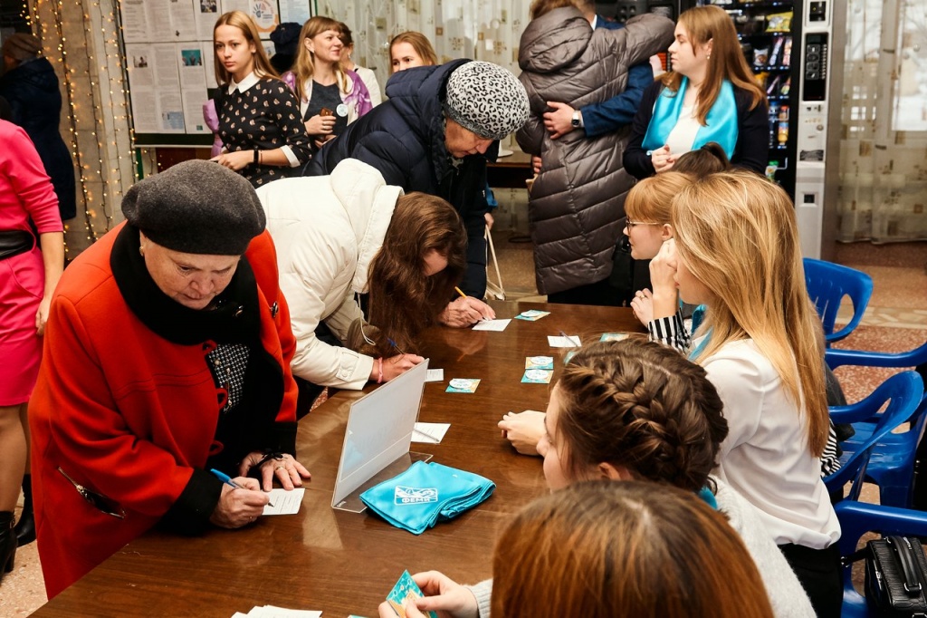 После небольшого дружеского общения наши ветераны и гости факультета отправились в ГДДЮТ. При входе в зал их встречали волонтеры, которые регистрировали гостей и подсчитывали самый многочисленный выпуск, который пришел на праздник.