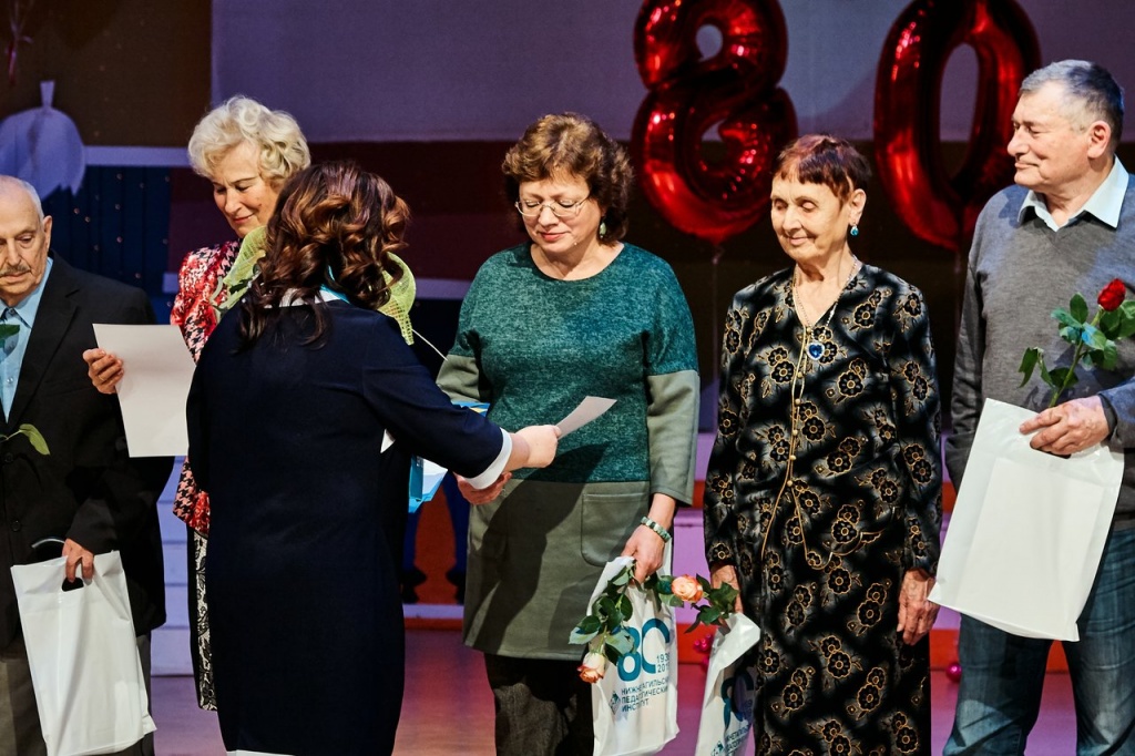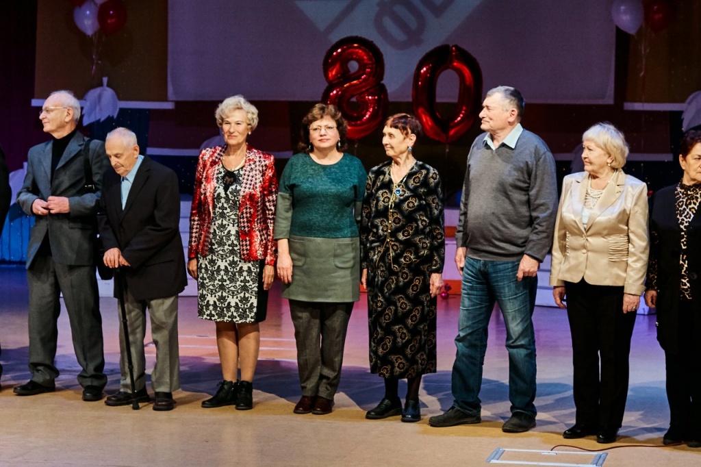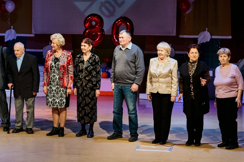 Юбилей включал не только праздничный концерт: с самого утра гости, выпускники и педагоги пришли в родной институт. Небольшим концертом их встретили нынешние студенты: зажигательный танец первокурсника и поэтическое приветствие студентов старших курсов отразили всю любовь к родному факультету и заботу о ветеранах.