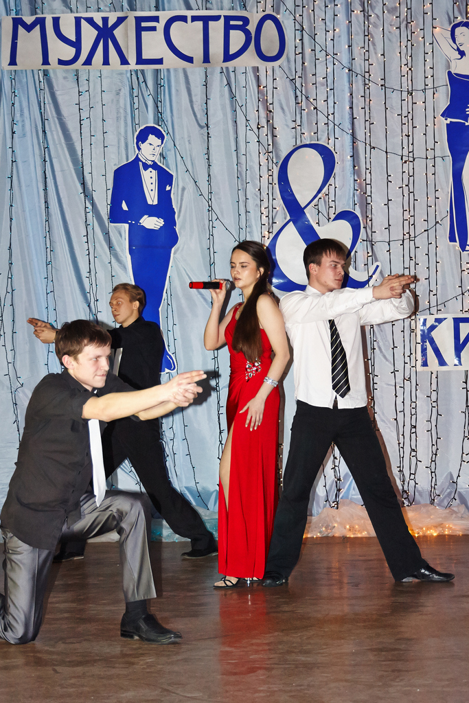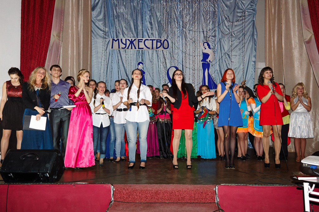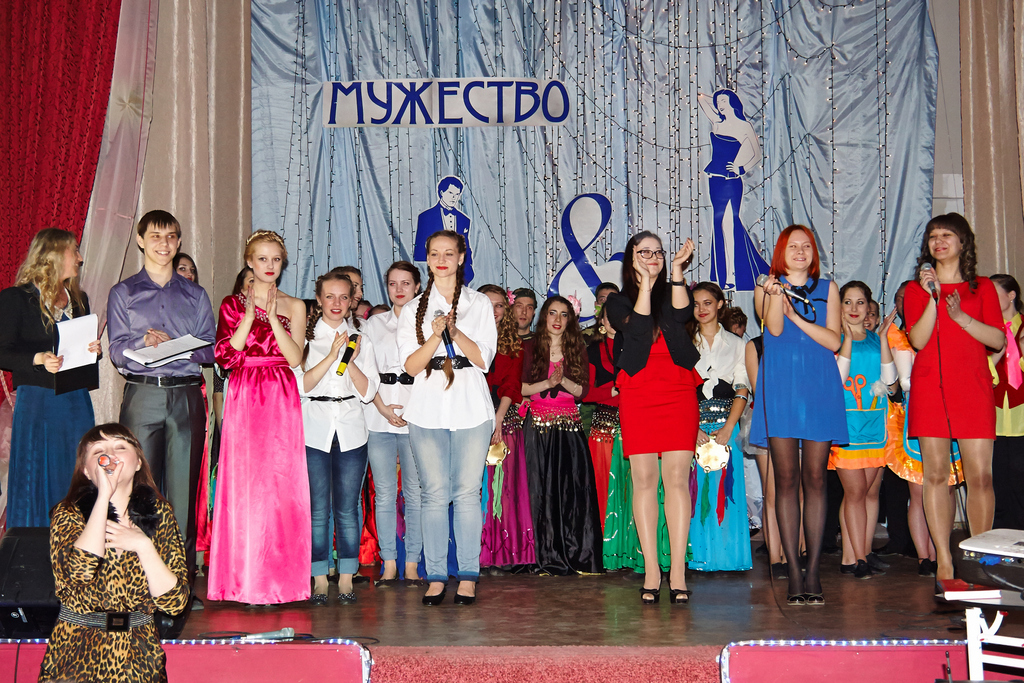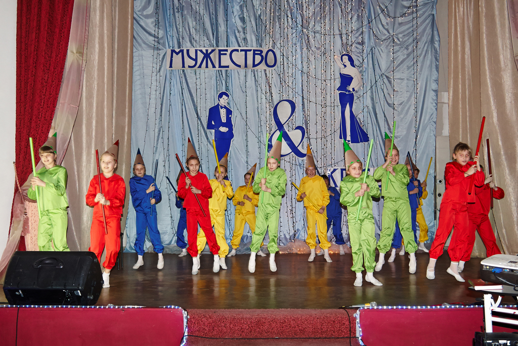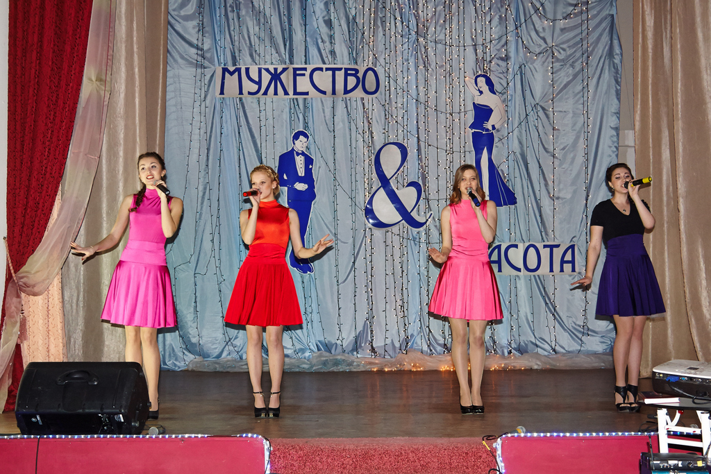 В актовом зале состоялся праздник Мужества и Красоты, посвященный Дню Защитника Отечества и Международному Женскому Дню. На мероприятии зрители увидели все многообразие характеров мужчин и женщин через персонажи фильмов.
