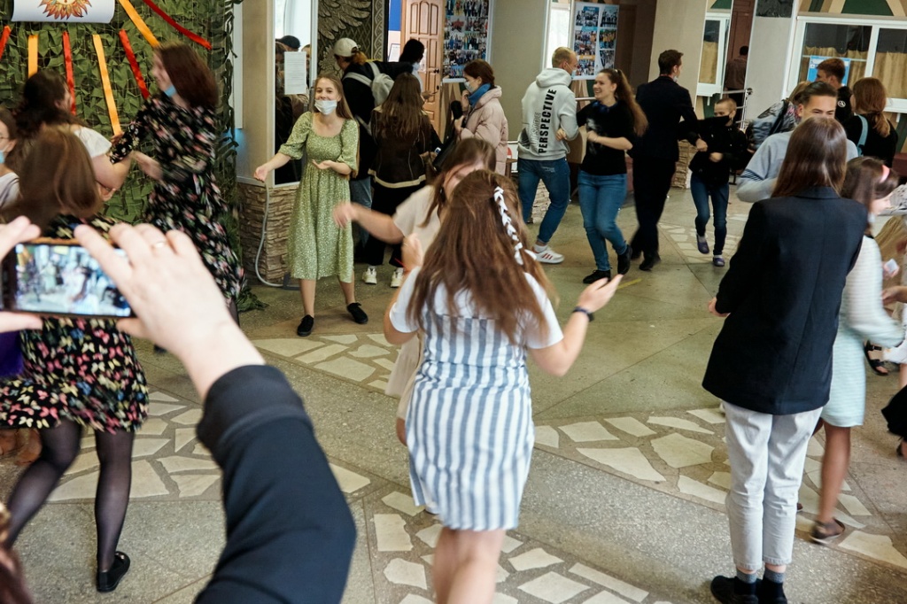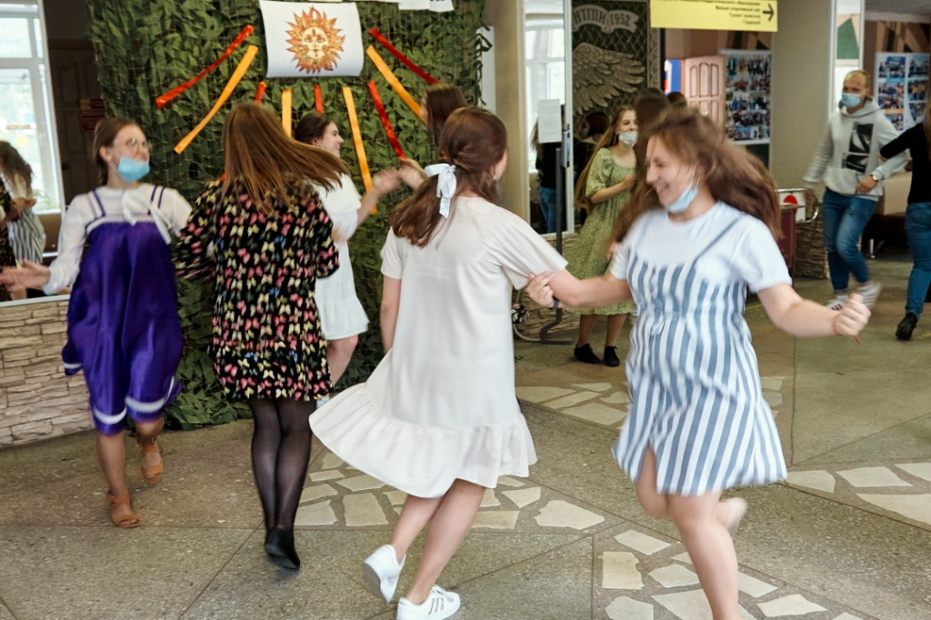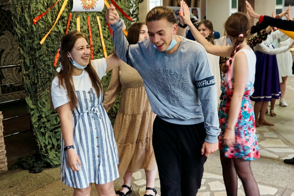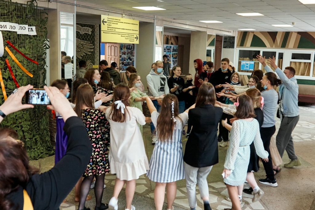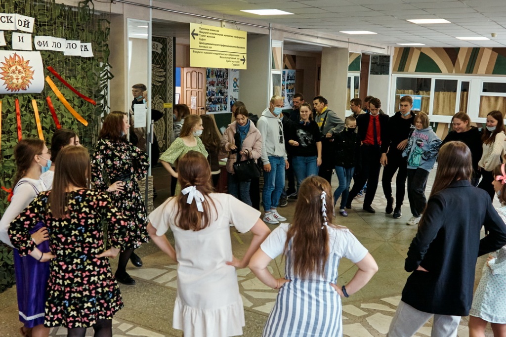 Завершился праздник вновь в фойе института плясками и играми. Заводные девушки-филологи привлекли в свой хоровод немало молодых людей с других факультетов, и собравшиеся зрители имели возможность насладиться вдохновенной присядкой, кадрилью, а также включиться в «ручеек» под веселую музыку.