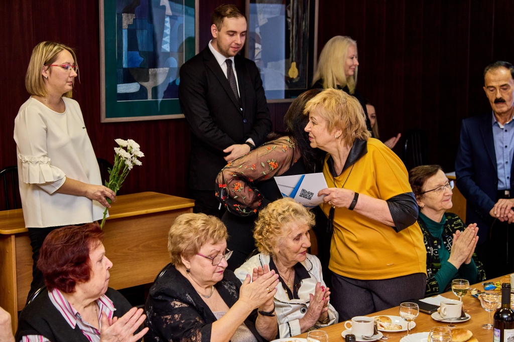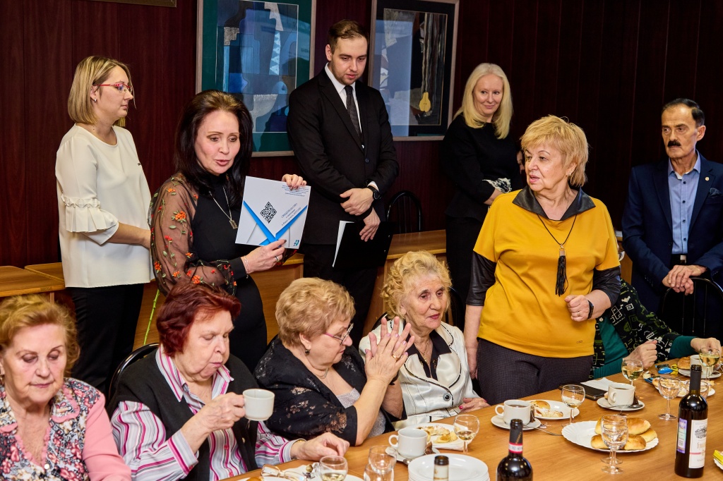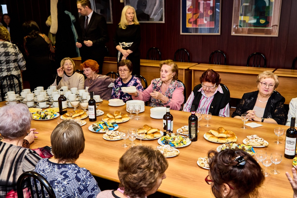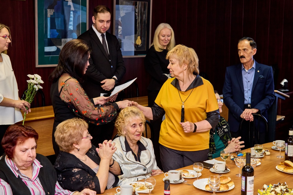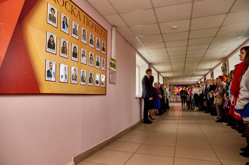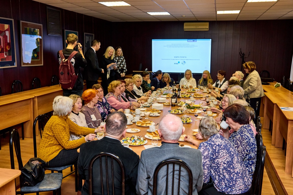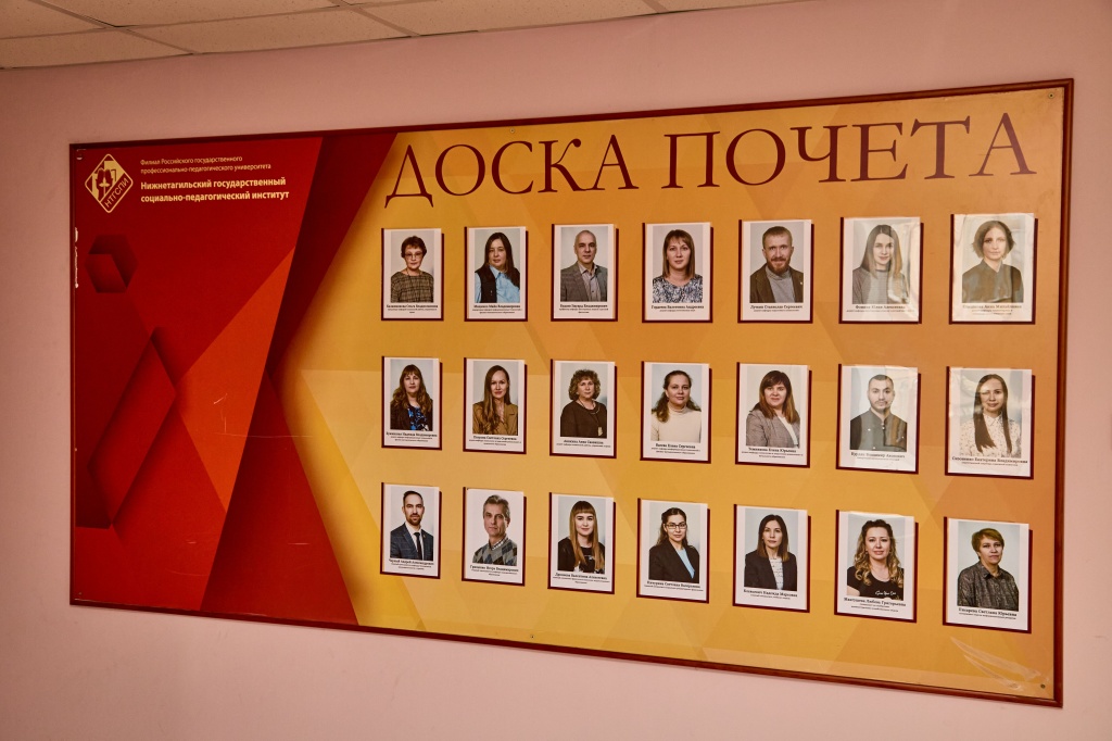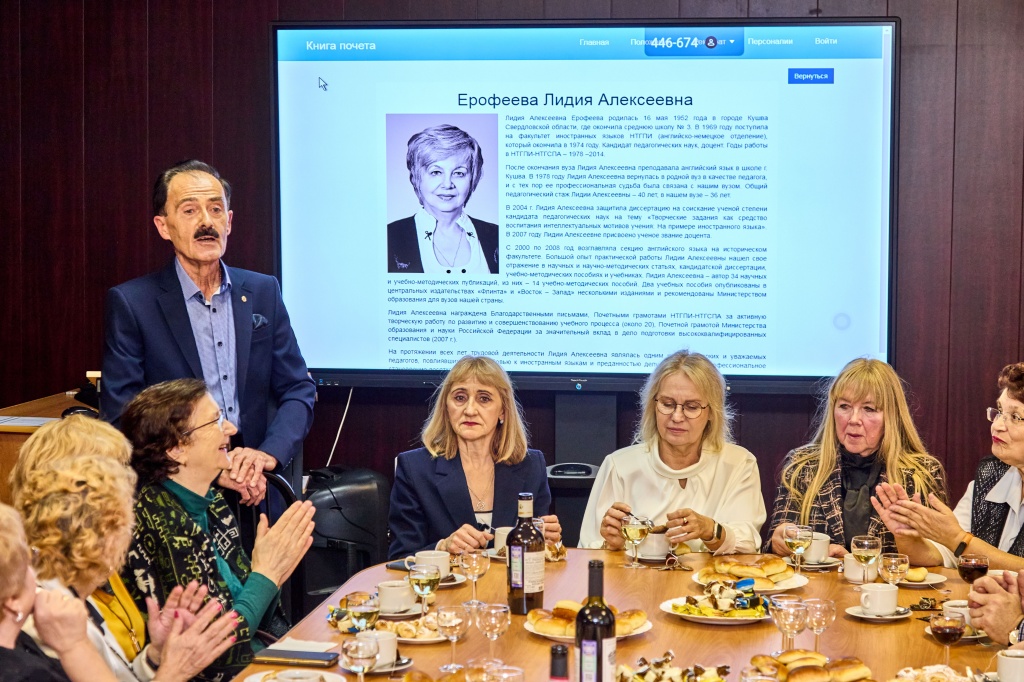 Затем состоялось открытие Доски почета. В торжественной обстановке сотрудников поздравила директор института, пожелала дальнейших успехов в работе и поблагодарила за добросовестный труд. В конференц-зале прошло чествование ветеранов института, отдавших многие годы жизни работе в вузе. На ветеранской гостиной была проведена процедура внесения биографий ветеранов педагогического труда в Книгу Почета НТГСПИ.