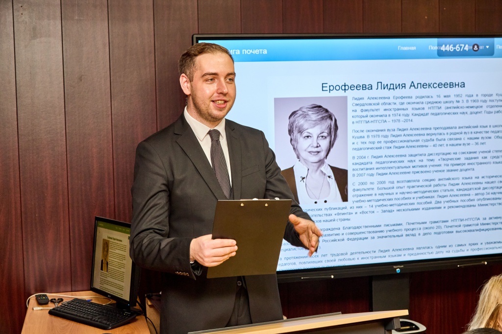 17 ноября, в преддверии Дня педагога высшей школы, который официально празднуется в Российской Федерации 19 ноября, в стенах НТГСПИ (филиала) РГППУ состоялся ряд торжественных мероприятий. Праздничный день начался с линейки, которая прошла у мемориальной доски ректора НТГСПА В. И. Смирнова. Линейку открыла директор института, доктор биологических наук Татьяна Валерьевна Жуйкова. Затем выступили декан факультета филологии и межкультурной коммуникации Олег Федорович Родин, старший научный сотрудник экологической лаборатории- Элеонора Васильевна Мелинг, почетный педагог, проректор по учебной работе Нина Борисовна Вернигор. Было сказано много добрых и важных слов благодарности за работу по развитию института нынешним педагогам, а также выдающемуся ректору НТГСПА Смирнову Владимиру Ивановичу – учителю, ректору, ученому.