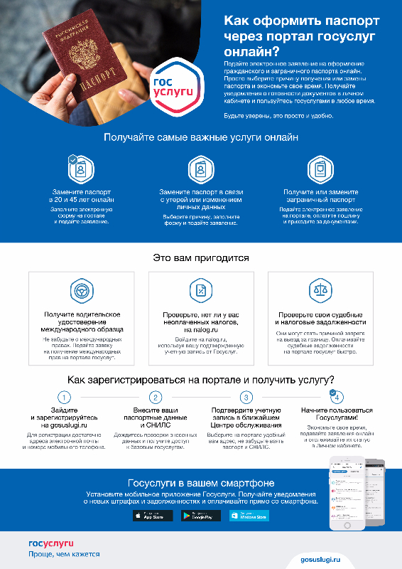 простота и удобство получения услуги — нет необходимости посещать учреждения и организации лично, а также выходить из дома или покидать рабочее место;