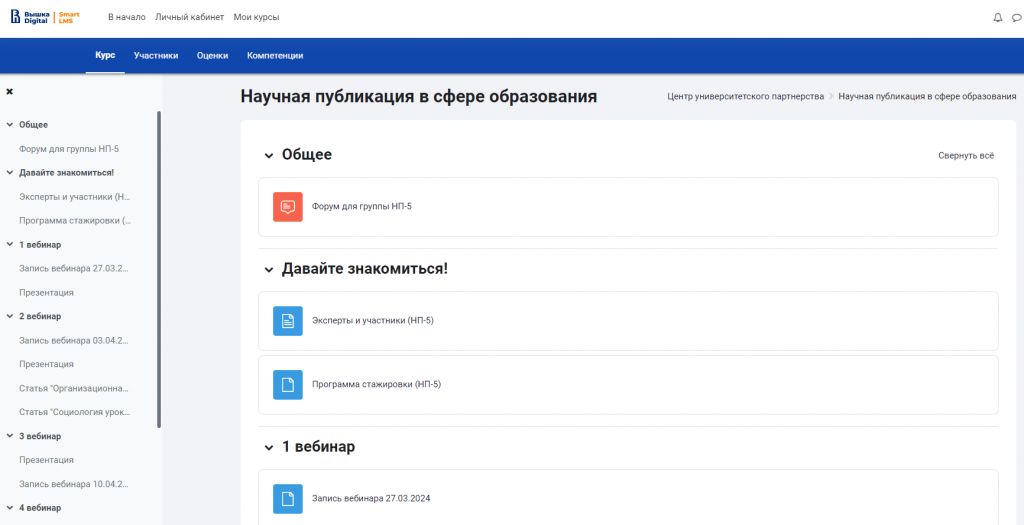 В связи с этим в феврале 2024 г. отдел научно-исследовательской работы НТГСПИ инициировал участие своих преподавателей и сотрудников в групповой цифровой стажировке «Научная публикация в сфере образования», которую организовал Национальный исследовательский университет «Высшая школа экономики» (г. Москва), где в рамках программы «Университетское партнерство», рассматриваются заявки от вузов на бесплатное корпоративное обучение.