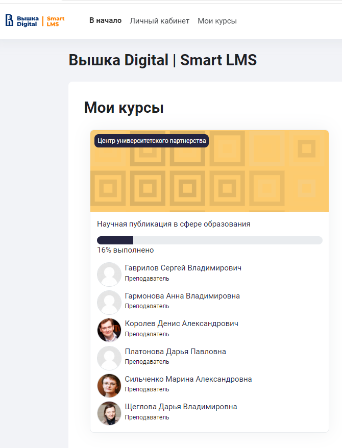 Выражаем благодарность команде преподавателей стажировки НИУ ВШЭ «Научная публикация в сфере образования» за полезную информацию, полученную слушателями в рамках курса. Отдельная благодарность за доступную подачу материала, высокую степень включенности наставников в темы научных исследований слушателей, доброжелательность и ценные советы.