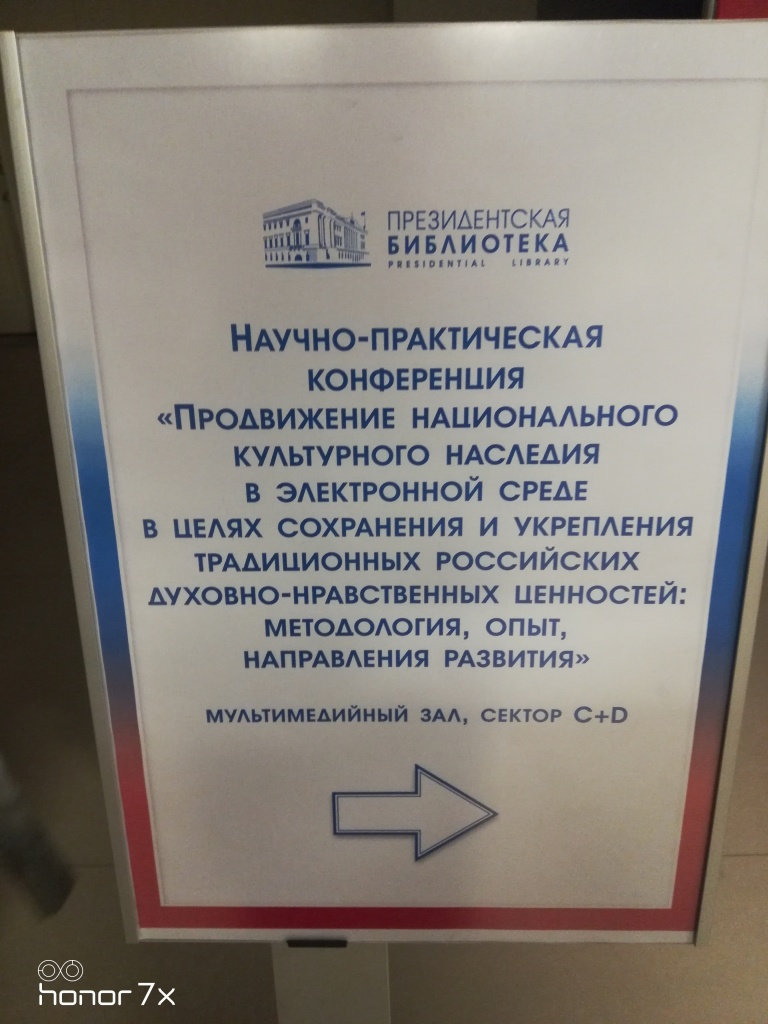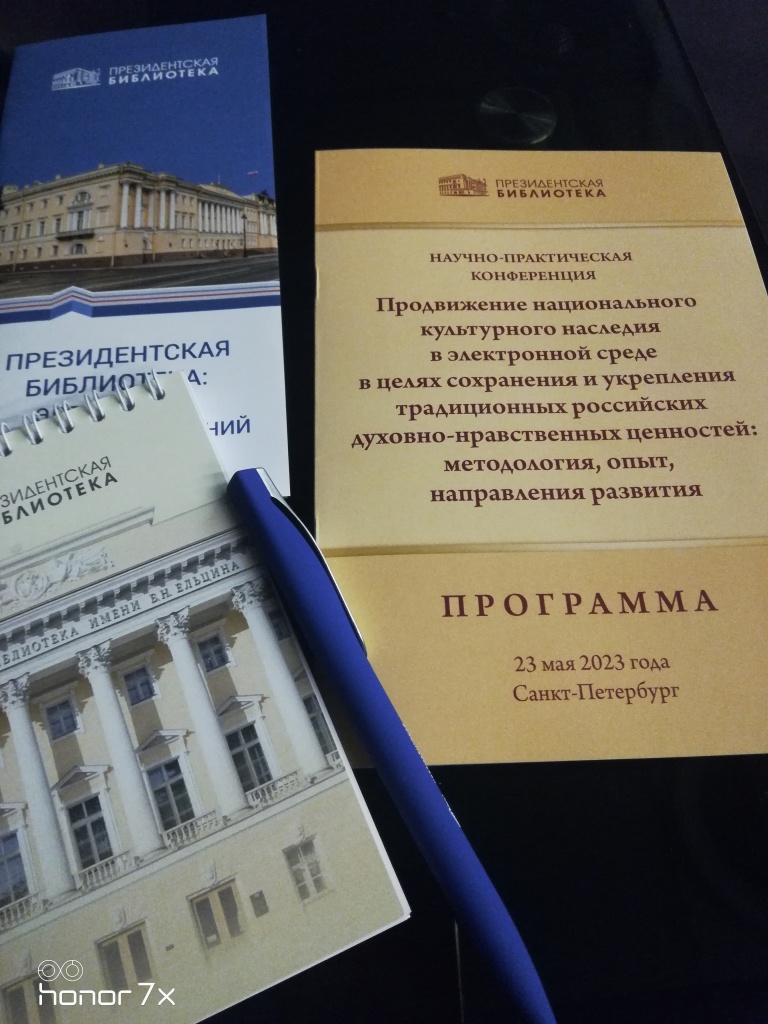23 мая в Президентской библиотеке С.-Петербурга состоялась научно-практическая конференция «Продвижение национального культурного наследия в электронной среде в целях сохранения и укрепления традиционных российский духовно-нравственных ценностей: методология, опыт, направления развития», на которой рассматривались вопросы продвижения национального культурного наследия в электронной среде. Мероприятие было проведено в рамках реализации государственной политики по сохранению и укреплению традиционных российских духовно-нравственных ценностей в рамках реализации положений Указа Президента Российской Федерации «Об утверждении Основ государственной политики по сохранению и укреплению традиционных российских духовно-нравственных ценностей».