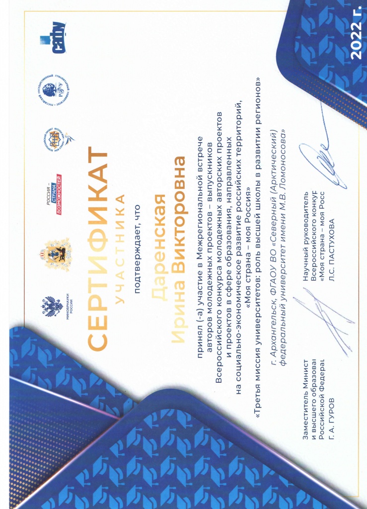 С 12 по 14 октября 2022 года в городе Архангельске на базе Северного (Арктического) федерального университета прошла встреча выпускников Всероссийского конкурса «Моя страна — моя Россия» по теме «Третья миссия университетов: роль высшей школы в развитии регионов».