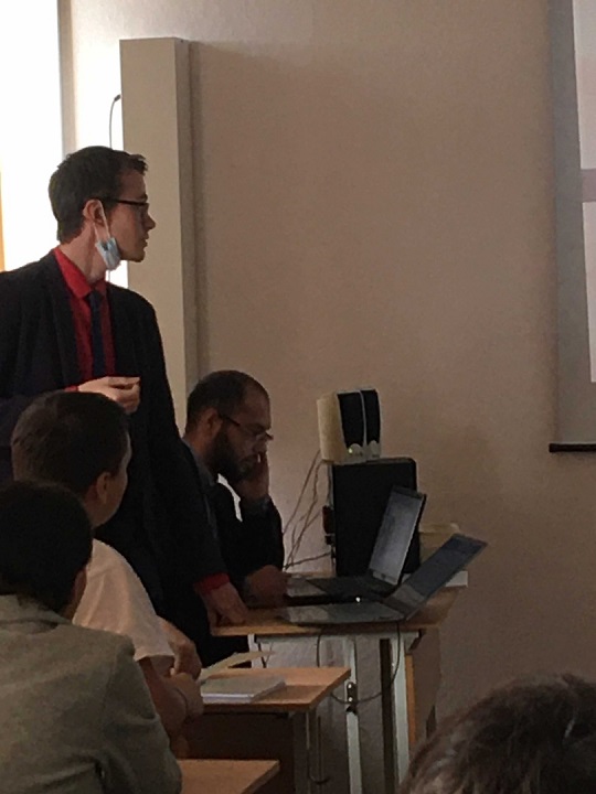 Обсуждение открыли студенты 3 курса СГФ. Модератор дискуссии – А. М. Олешкова. Александр Лебедев и Кирилл Батаков презентовали достижения наук естественно-научного цикла. Дмитрий Ведерников представил информацию об исследованиях в области экономики.