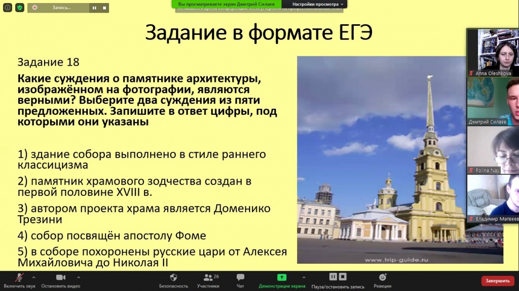Таким образом, мы подробно рассмотрели один из самых интересных исторических периодов – период Дворцовых переворотов, а также сделали упор на то, как правильно решать и оформлять задания ЕГЭ, связанные с данной тематикой. Модератором дискуссии выступила Анна Михайловна Олешкова, преподаватель СГФ.