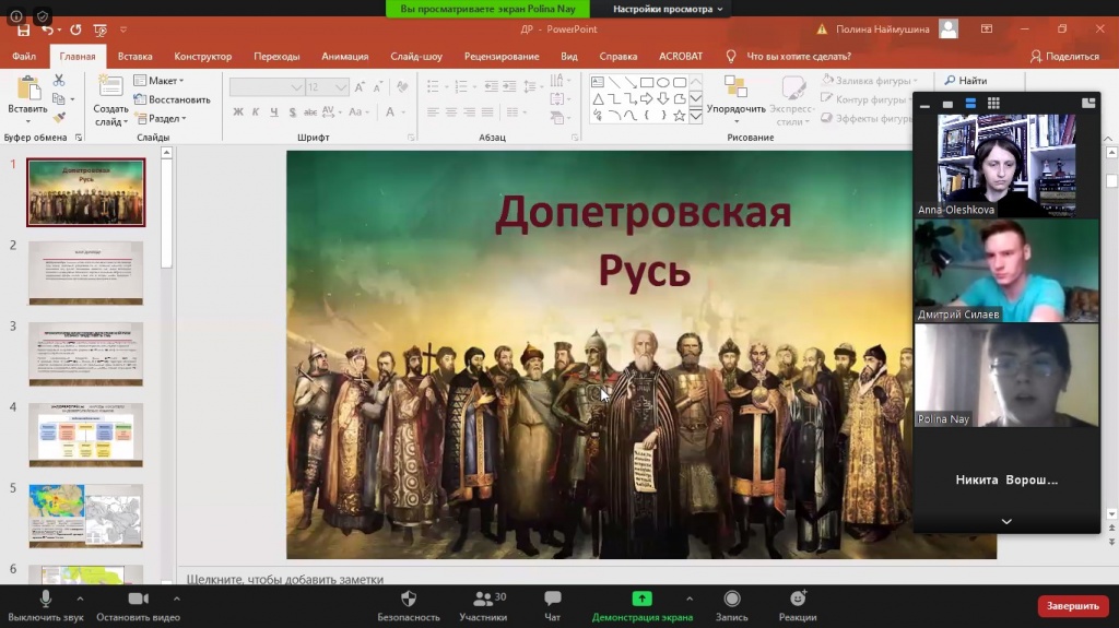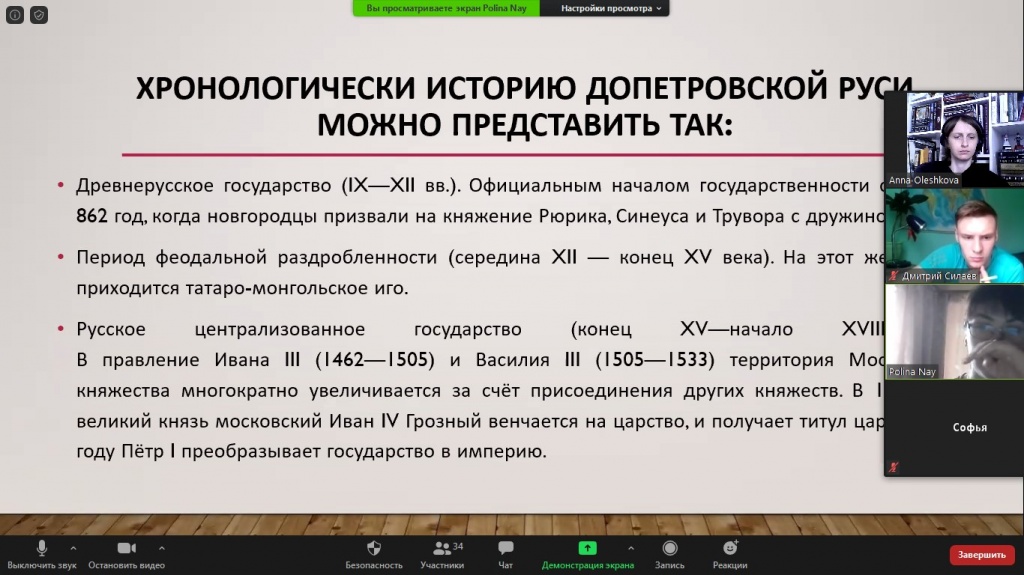 14 мая состоялось занятие еженедельного дискуссионного клуба «Pro et contra» СГФ в онлайн-формате на платформе Zoom по теме «Допетровская Русь». В обсуждении данной темы приняли участие студенты, а также школьники, которые собираются сдавать ЕГЭ по истории.