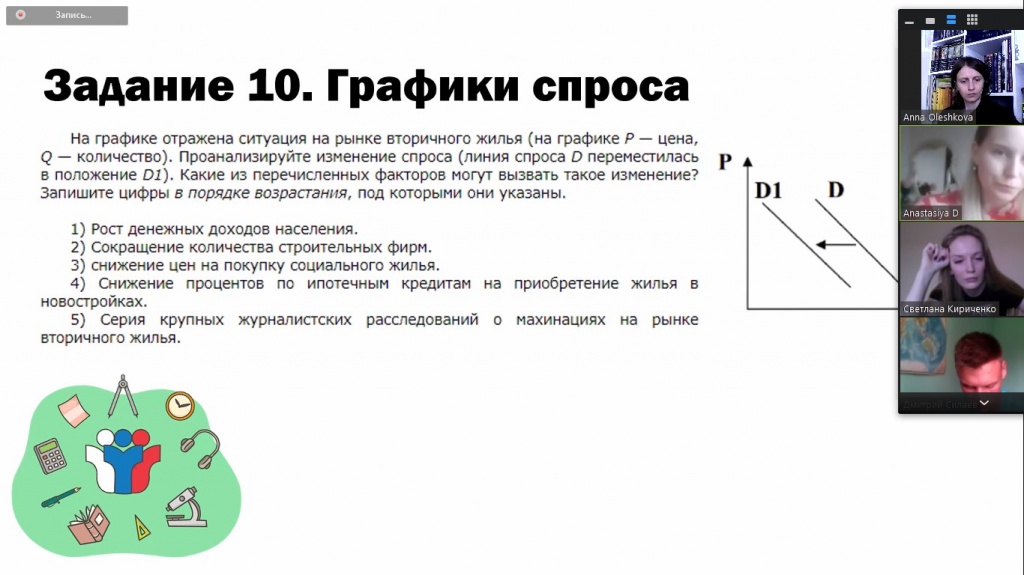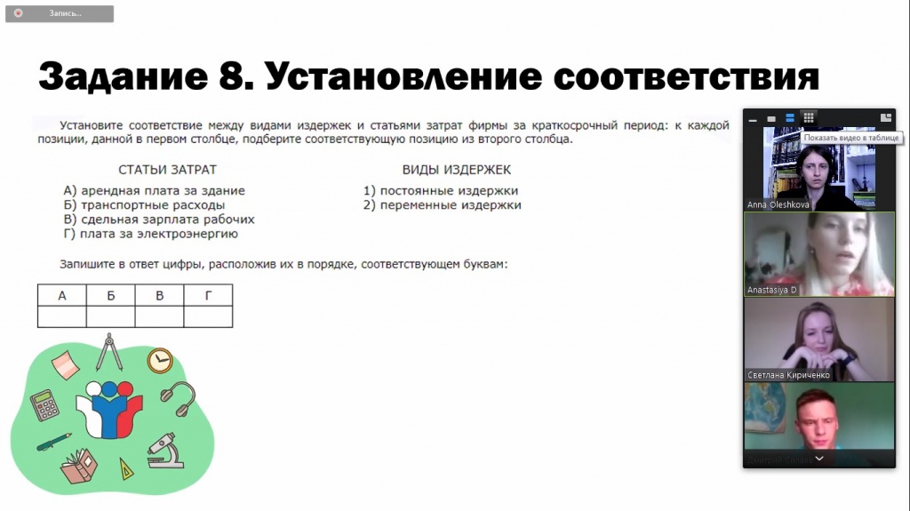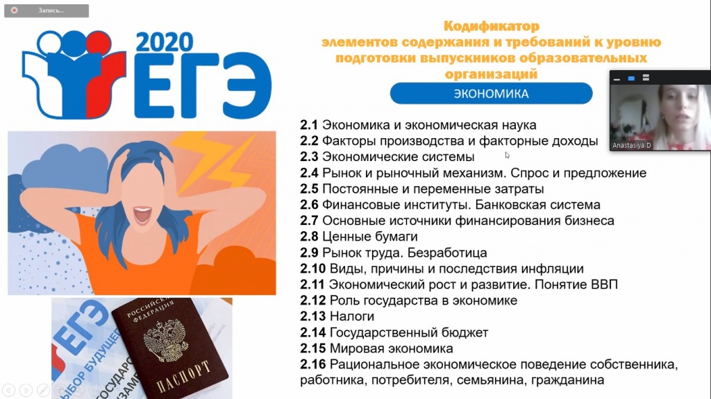Анастасия Демина в своем выступлении остановилась на теме «Экономика». В ходе обсуждения был сделан вывод, что в этом блоке следует быть особенно внимательным с понятийным аппаратам курса, уделить внимание специфике экономических систем, заданиям с множественным выбором и, конечно, графикам.