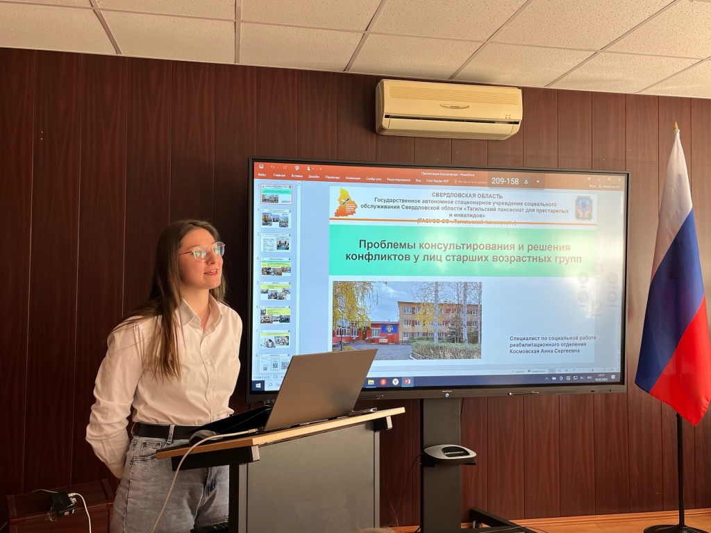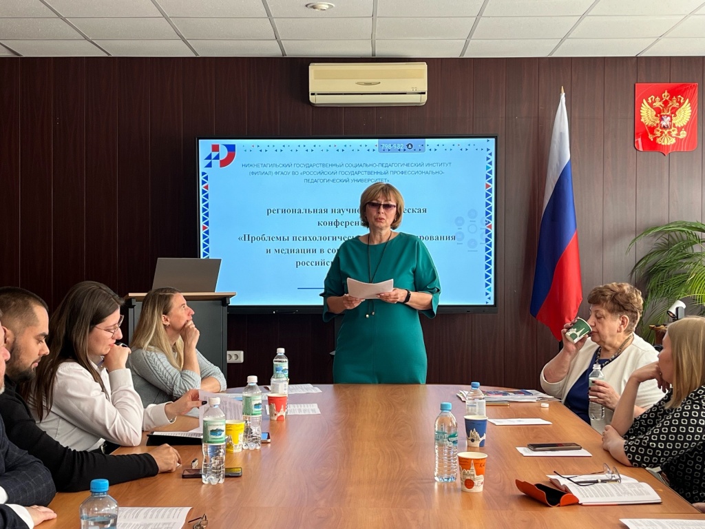 рассмотрение универсальности технологии консультирования – в выступлении Ольги Владиславовны Калашниковой; анализ практического опыта решения конфликтов в образовательной организации, – в докладе Валентины Сергеевны Щипуновой, руководителя муниципального ресурсного центра по проблемам девиантного поведения обучающихся (г. Нижний Тагил); возможности консультирования и медиации в решении проблем семей, воспитывающих ребенка с ограниченными возможностями здоровья, – в сообщении специалистов службы сопровождения школы-интернат № 2 г. Нижнего Тагила Ольги Владимировны Любовной и Натальи Анатольевны Кухоренко; роль консультирования в патриотическом воспитании молодежи была рассмотрена ведущим специалистом отдела реализации патриотических проектов «Регионального центра патриотического воспитания» г. Екатеринбурга Денисом Евгеньевичем Фердерером, а проблемы консультирования и решения конфликтов у лиц старших возрастных групп были обобщенные в докладе специалиста по социальной работе реабилитационного отделения ГАСУСО СО «Тагильский пансионат» г. Нижний Тагил Анны Сергеевны Космовской.