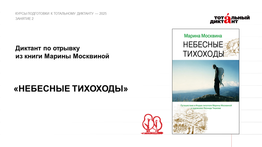 Второе занятие по подготовке к Тотальному диктанту состоялось в НТГСПИ. Участники написали тренировочный диктант по книге Марины Москвиной «Небесные тихоходы», повествующей о путешествии в Индию.