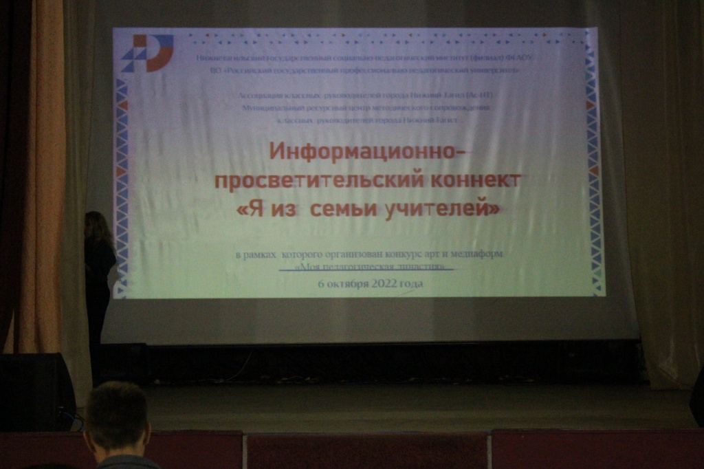 6 октября 2022 в Нижнетагильском государственном социально-педагогическом институте филиала РГППУ прошел в очном формате информационно-просветительский коннект «Я из семьи учителей», в рамках которого организован конкурс арт- и медиаформ «Моя педагогическая династия». Соорганизаторами мероприятия выступила Ассоциация классных руководителей города Нижнего Тагила и Муниципальный ресурсный центр методического сопровождения классных руководителей города Нижнего Тагила. Участие в мероприятиях коннекта приняли школьники, студенты организаций среднего профессионального и высшего образования, педагоги, классные руководители, заместители директоров по воспитательной и профориентационной работе.