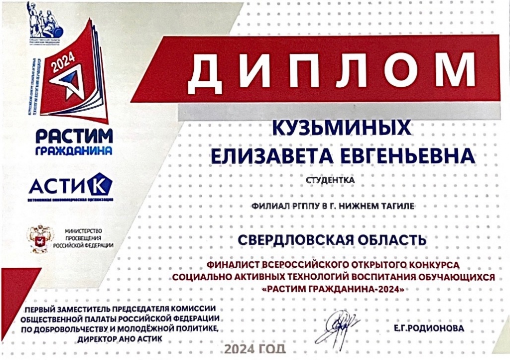 Из более чем тысячи участников заочного этапа в финал вышли 106 финалистов. Елизавета Кузьминых, студентка социально-гуманитарного факультета, стала единственной представительницей студенческого сообщества среди опытных педагогов и руководителей, что свидетельствует о высоком уровне оценки ее проекта.