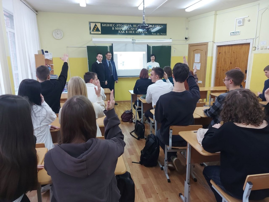 После беседы состоялась интеллектуально-познавательная игра «Мир финансов». В форме игровой модели «Как стать миллионером» учащиеся 11 класса отвечали на вопросы об истории финансов, ведущих российских финансистах, финансовых инструментах и институтах, а также финансовой безопасности. Заместитель директора по учебной работе школы Елена Михайловна Сорочкина и учитель обществознания Светлана Геннадьевна Горина, бывшие выпускники нашего исторического факультета, активно помогали ребятам в ответах на сложные вопросы. Первое место заняла команда «Магистры» в составе Новиковой Анастасии, Спиридоновой Дарьи и Хромовой Алёны.