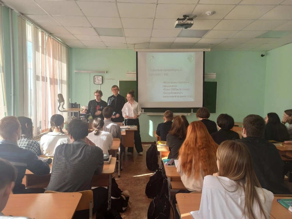 Ребята охотно согласились встретиться с учителями и старшеклассниками тех школ, в которых они сами еще недавно обучались, где их еще помнят. На встречах с учащимися демонстрировался фильм о институте, рассматривалась информация об обучении на СГФ и проводился специально разработанный для реализации акции квиз, который получил название «Гуманитарный движ», так как он содержал задания, связанные с дисциплинами, изучаемыми на СГФ.