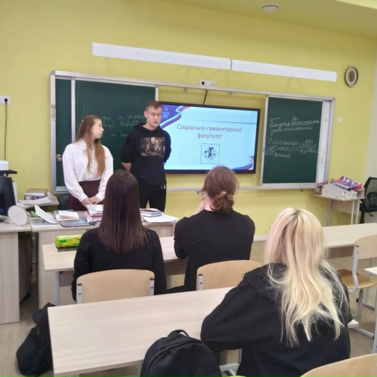 В ходе встречи было уделено внимание конкретным аспектам: особенностям работы в выбранной сфере, требованиям к специалистам, возможностям карьерного роста, условиям поступления в НТГСПИ, необходимых качествах для успешной деятельности. Студенты ПКМ Михаил Шишкин и Валерия Рафикова рассказали школьникам о преимуществах обучения в НТГСПИ, направлениях подготовки, более подробно остановились на профилях подготовки социально-гуманитарного факультета, а также рассказали о денежных выплатах при обучении.
