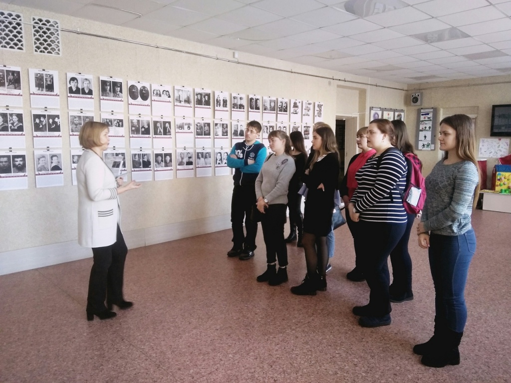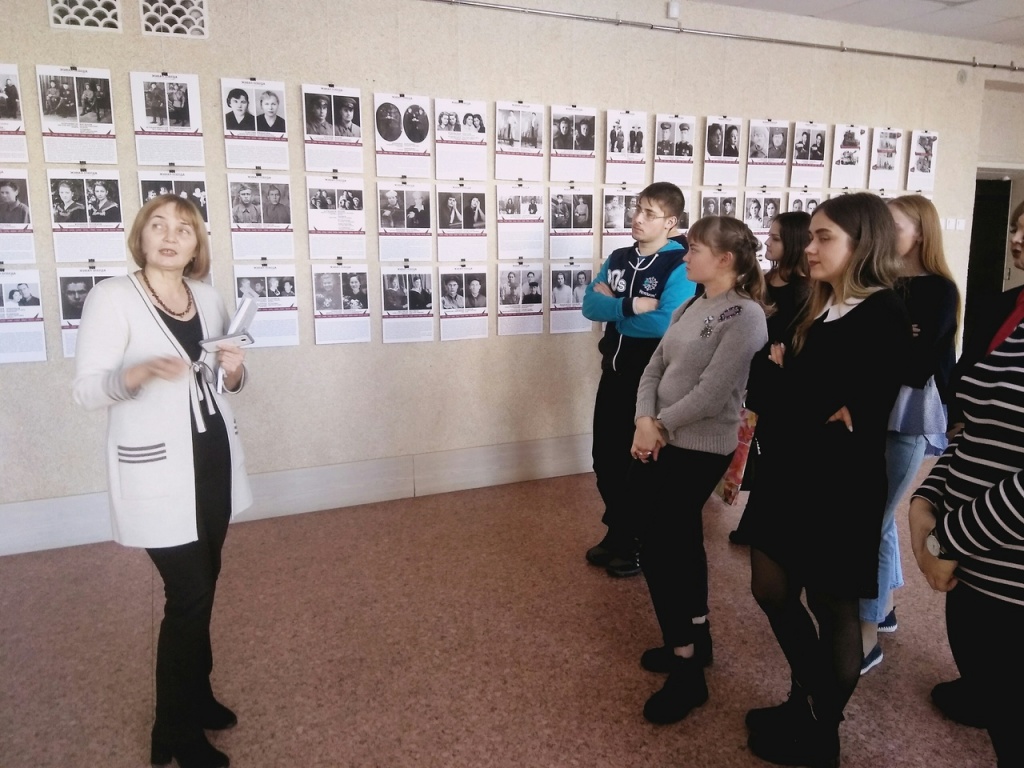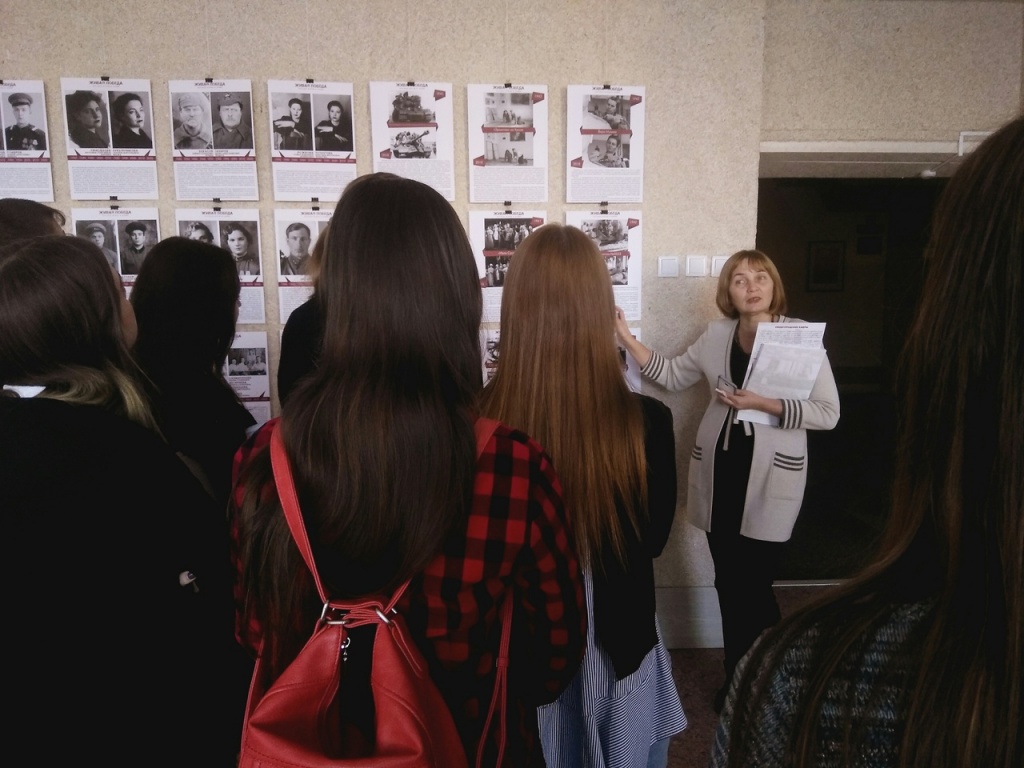 С 13 по 30 ноября в выставочном зале музея НТГСПИ была представлена выставка регионального патриотического проекта «Живая Победа. История войны в лицах». В период работы экспозиции Ольга Васильевна Рыжкова, доцент кафедры гуманитарных и социально-экономических наук, проводила тематические экскурсии для студентов разных факультетов, рассказывая не только о судьбах людей 40-х годов, о жизни известных деятелей искусства, попавших на Урал в годы эвакуации, но и о судьбах городов, которые приняли на себя всю скорбь и тяжесть войны.