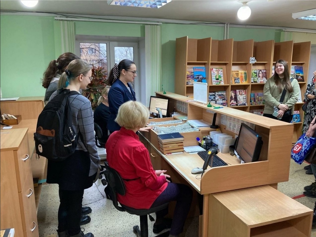 11 ноября студенты факультета психолого-педагогического образования группы Нт-306о-НДО под руководством доцента кафедры ППО Т. Д. Сеговой в рамках дисциплины «Организация внеурочной деятельности младших школьников» отправились в Центральную библиотеку г. Нижний Тагил. Эта «экспедиция» была организована с целью ознакомления учащихся с работой библиотеки, ее ресурсами и возможностями в организации внеурочной деятельности младших школьников. Студенты посетили несколько отделов. Первый отдел был посвящен «Адаптивной культуре». Здесь находились необычные книги, сделанные не только библиотекарями, но и самими читателями. Они подойдут не только для детей школьного возраста, но и для дошкольников, так как сделаны из мягких материалов и приятны на ощупь. Здесь же можно увидеть работу специального оборудования «голосовой карандаш», который озвучивает записанные в него книги, когда подносишь его к одной из трех книг. Студентам была продемонстрирована работа данного карандаша на примере книги «Страницы музыки». При работе карандаш озвучивал не только строчку из книги, но и название самой книги и даже героев, которые изображены в ней. В этом же зале находятся книги для плохо видящих детей (где шрифт больше, чем у обычной) и для незрячих (книги, напечатанные шрифтом Брайля).