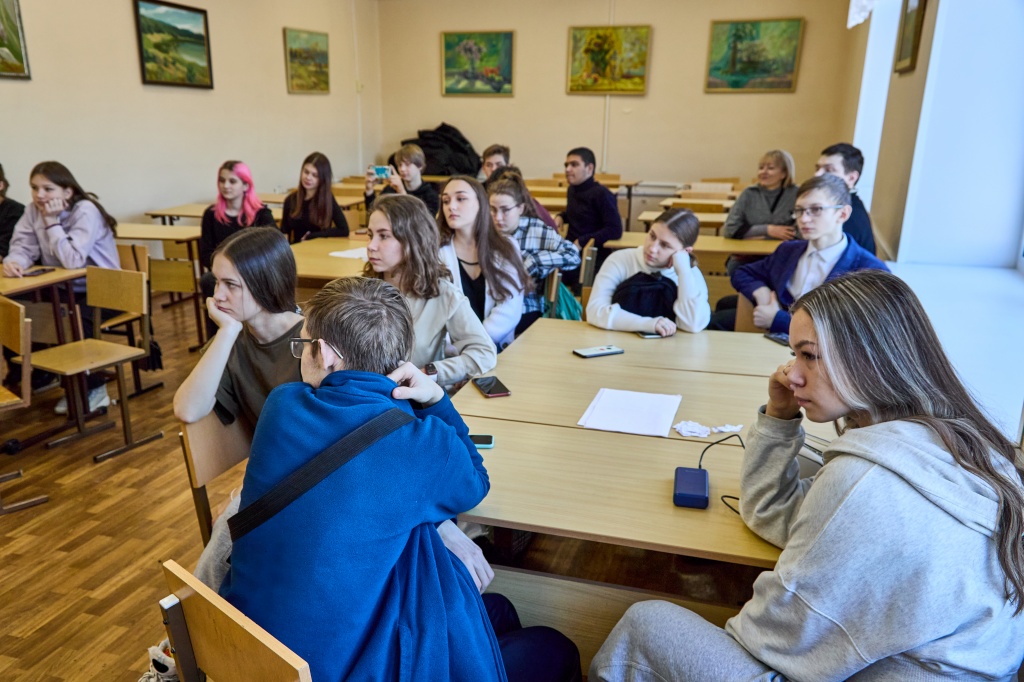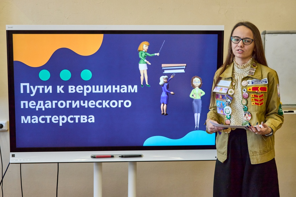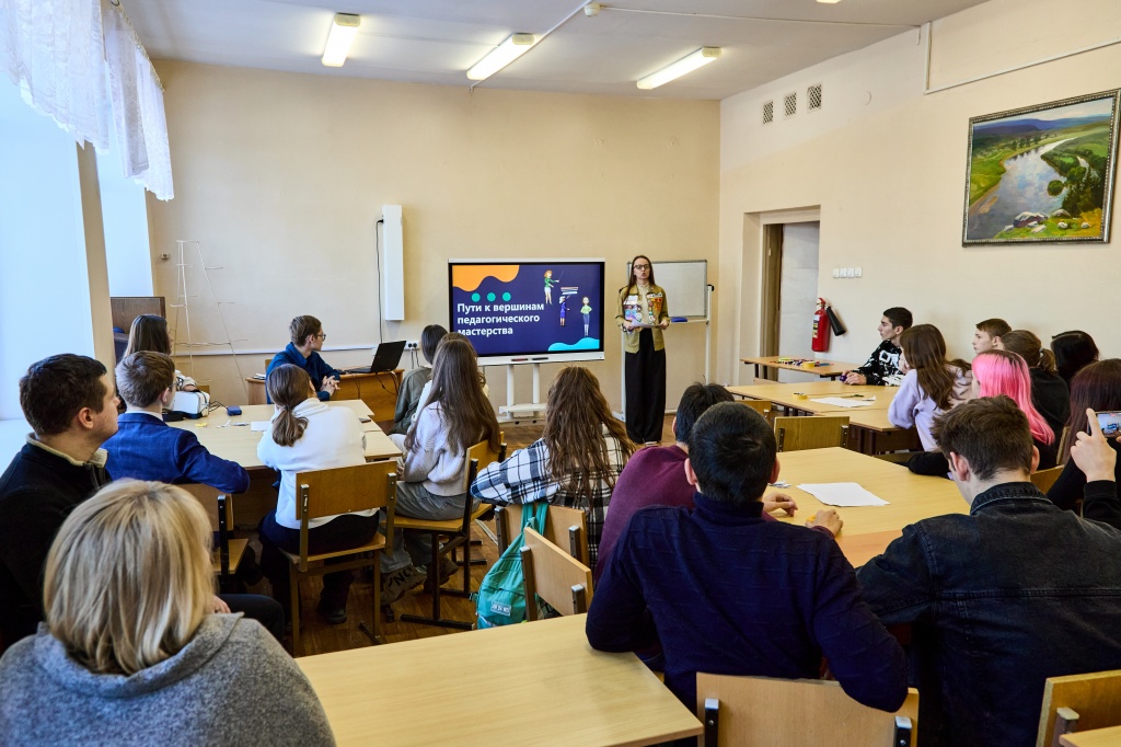 Обсуждению образа современного учителя и был посвящен мастер-класс, проведенный в январе 2023 г. студенткой 5 курса факультета филологии и межкультурной коммуникации Анастасией Шестаковой под руководством доцента кафедры ИЯРФ Ю. В. Несыновой с учащимися педагогических классов школ города. В ходе мастер-класса на примерах из художественной литературы и фильмов (В. Распутин «Уроки французского», А. Иванов «Географ глобус пропил», сериал «Классная Катя») были рассмотрены существующие в практике школьного обучения стили педагогического общения. Проанализировав фрагменты произведений, учащиеся самостоятельно пытались определить плюсы и минусы каждого стиля, высказывали свое мнение о том, учителя с каким педагогическим стилем чаще любимы учениками или вызывают неприязнь.