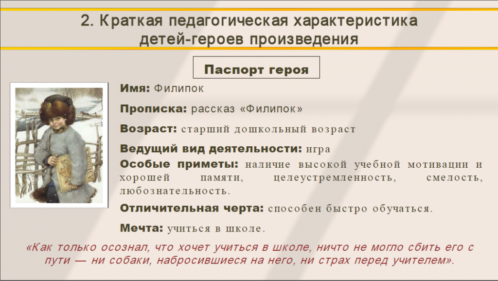 Задание № 4. Конкурс «Педагогический анализ художественного произведения». Команде требовалось разобраться в педагогической ситуации, которая сложилась в произведении Л. Н. Толстого «Филипок», определить его воспитательный потенциал и коллективно заполнить таблицу – 1 место.