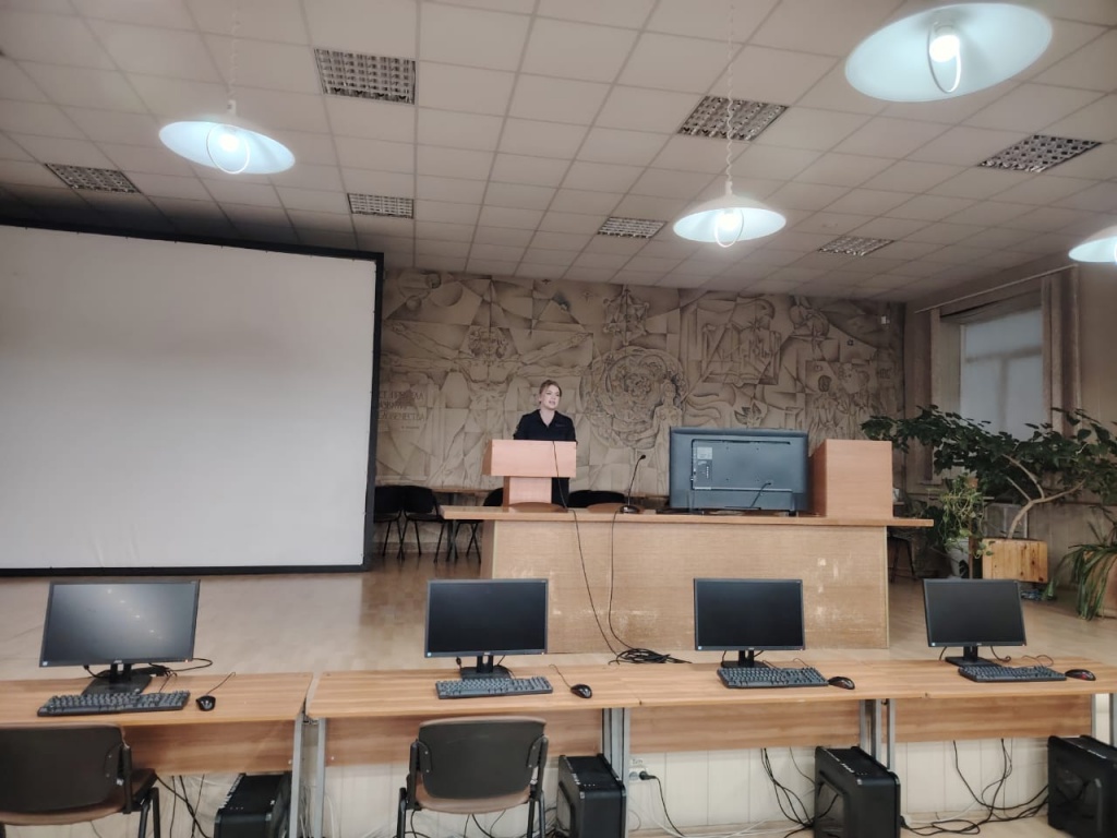 Рассказ профессионала, сотрудника полиции был построен на диалоге. Полина Евгеньевна задавала студентам вопросы о том, как можно найти опасные вещества, и о том, насколько нужно быть грамотным и осторожным в среде сверстников, в сетях интернет.