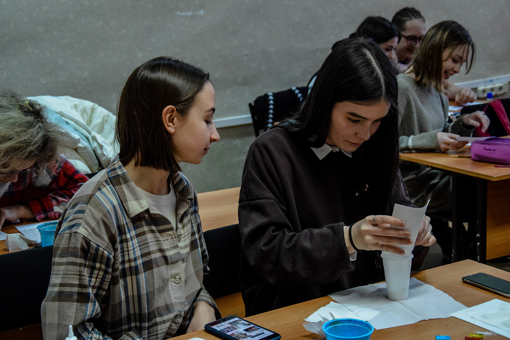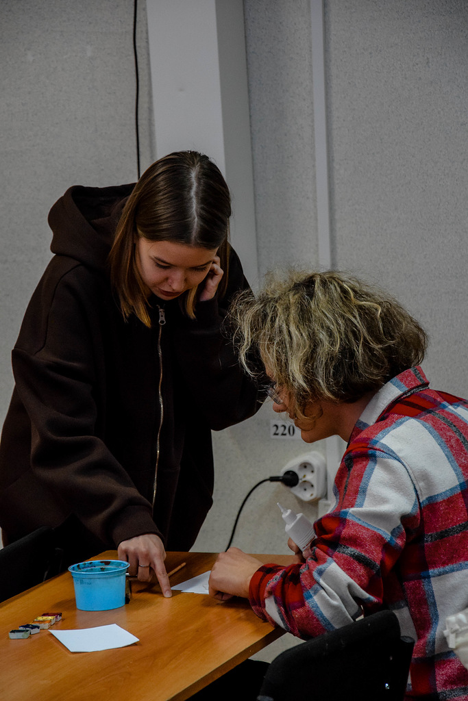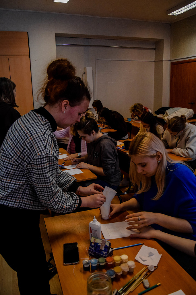 Также в рамках Дня психологии студентами факультета художественного образования группы Нт-304о ИИД Евгенией Белоусовой, Полиной Воложаниной, Натальей Лопаевой и Юлией Шестаковой был проведен мастер-класс по нетрадиционной технике обучения изобразительному искусству «Рисование солью».