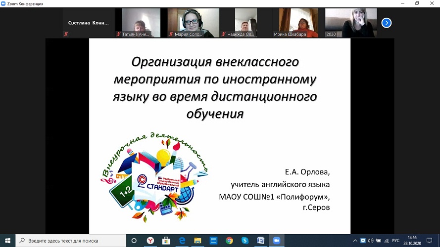 28 октября 2020 г. на факультете филологии и межкультурной коммуникации НТГСПИ в онлайн-формате был проведен региональный научно-методический семинар на тему «Обучение иностранному языку в дистанционном формате». Организатором мероприятия выступила кафедра иностранных языков и русской филологии и муниципальный ресурсный центр по методическому сопровождению иноязычного образования образовательных учреждений, подведомственных управлению образования администрации Горноуральского городского округа. В семинаре приняли участие учителя иностранного языка средних общеобразовательных школ Горноуральского городского округа, преподаватели среднего профессионального образования г. Нижний Тагил, преподаватели и студенты кафедры иностранных языков и русской филологии ФФМК НТГСПИ. По приглашению организаторов в семинаре участвовали учителя иностранного языка средних общеобразовательных школ соседних округов – Верхнесалдинского, Кировоградского, Туринского, Североуральского, Серовского, а также городского округа ЗАТО Свободный.