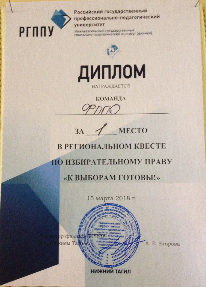 18 марта по всей стране проходили выборы президента Российской Федерации. В связи с предстоящими выборами в НТГСПИ на социально-гуманитарном факультете 15 марта была организована квест-игра «К выборам готовы!». Игра проводилась для привлечения внимания молодежи к процедуре голосования и повышению мотивации молодых людей к участию в выборах президента Российской Федерации.
