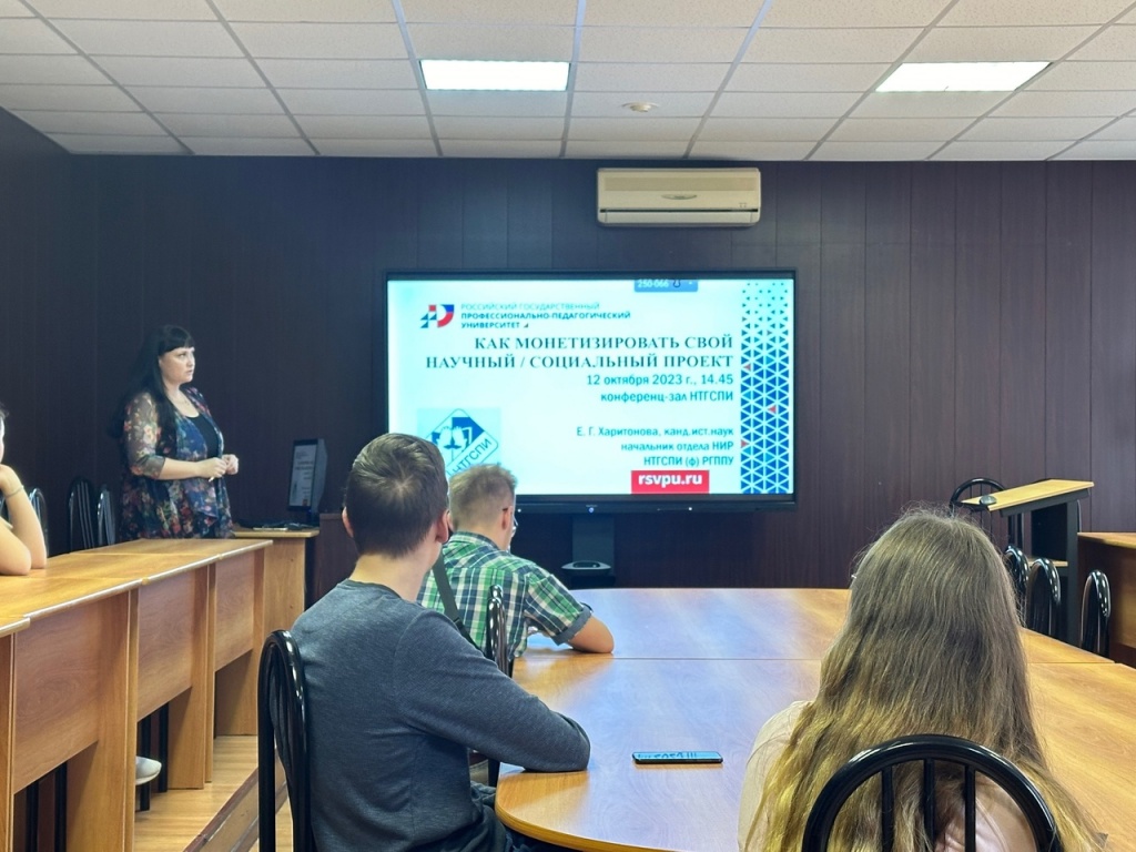 12 октября на площадке Филиала РГППУ в г. Нижнем Тагиле состоялся мастер-класс «Как монетизировать свой научный / социальный проект?», в котором приняли участие студенты и преподаватели четырех факультетов: ФХО, ФППО, ФФМК и ФСБЖ.