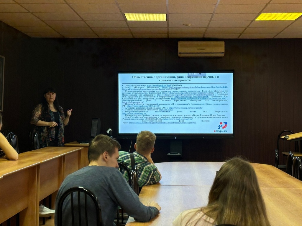 Мероприятие проводилось в рамках Всероссийской просветительской акции «Поделись своим знанием» от Российского общества «Знание». Модератор мастер-класса Елена Геннадьевна Харитонова, начальник отдела научно-исследовательской работы НТГСПИ, рассказала о действующих на сегодняшний день в России государственных и негосударственных организациях, фондах, выступающих спонсорами научных и социальных проектов. Кроме того, были озвучены примеры отечественных краудфандинговых площадок, с помощью которых не только студенты, но и преподаватели могут привлечь средства на реализацию своих проектов. Мастер-класс строился на конкретных практиках получения той или иной финансовой помощи.