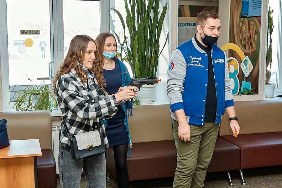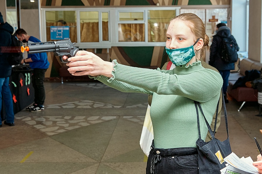 В детстве наверняка каждый играл в «пистолетики», стрелялки-догонялки и «войнушку». Годы идут, но поиграть интересно в любом возрасте! 19 февраля в фойе института отдел учебно-воспитательной работы организовал игру, которая позволила каждому желающему проверить свою точность попадания в цель. Самые меткие получили памятные подарки и призы в виде брендовой продукции НТГСПИ. Акция приурочена к приближающемуся празднику – Дню защитника Отечества.
