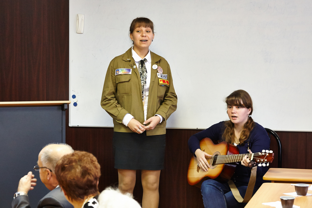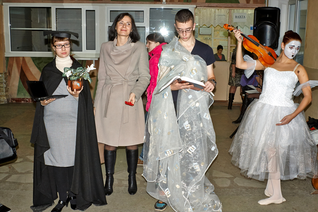 Студенты социально-гуманитарного факультета порадовали зрителей песней «Ветер перемен», а вот факультет художественного образования пообщался с премьер- министром Дмитрием Анатольевичем Медведевым. В своем интервью он согласился, что жизнь преподавателей не так легка, предстоит еще многое сделать, но обещал помогать.